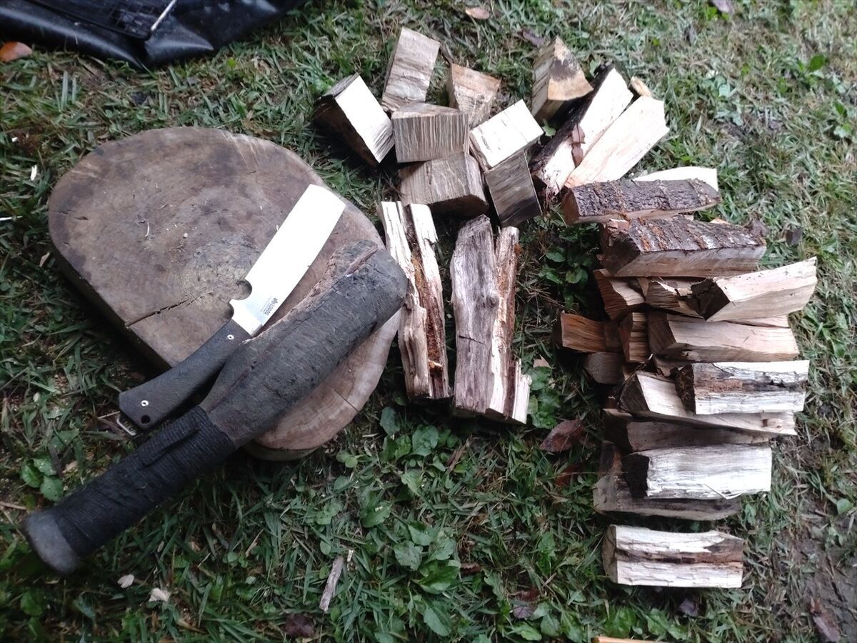 雨は降り続いています。先日来日中に焚き火を切らさず薪を燃やし続けていたら最終日まで薪が足りそうにありません(^^;