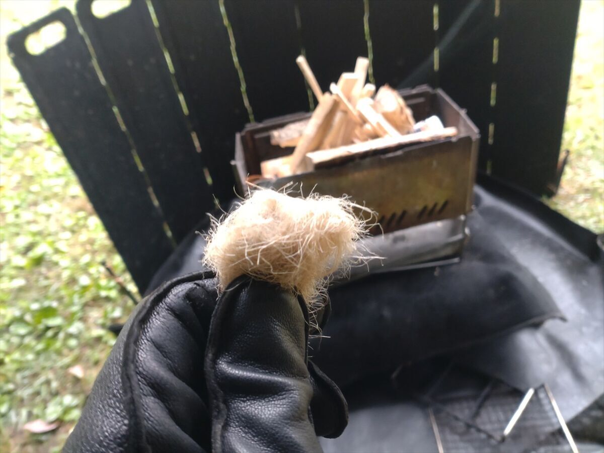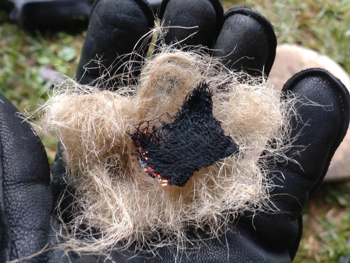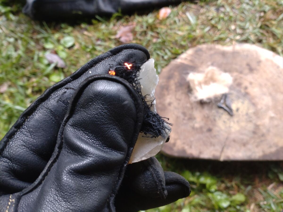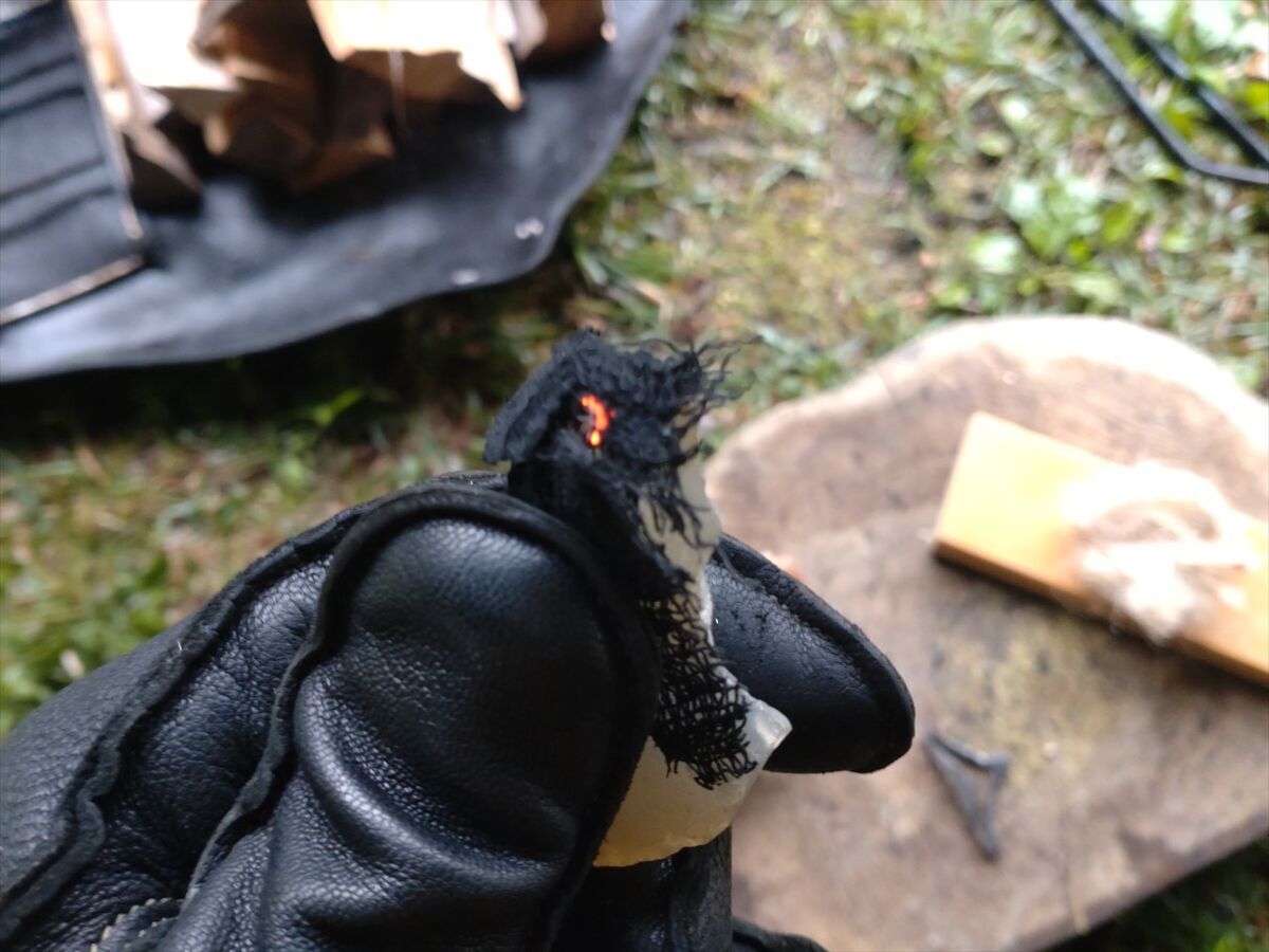 今日は普段と大差なく火打石でチャークロスに点火しました。