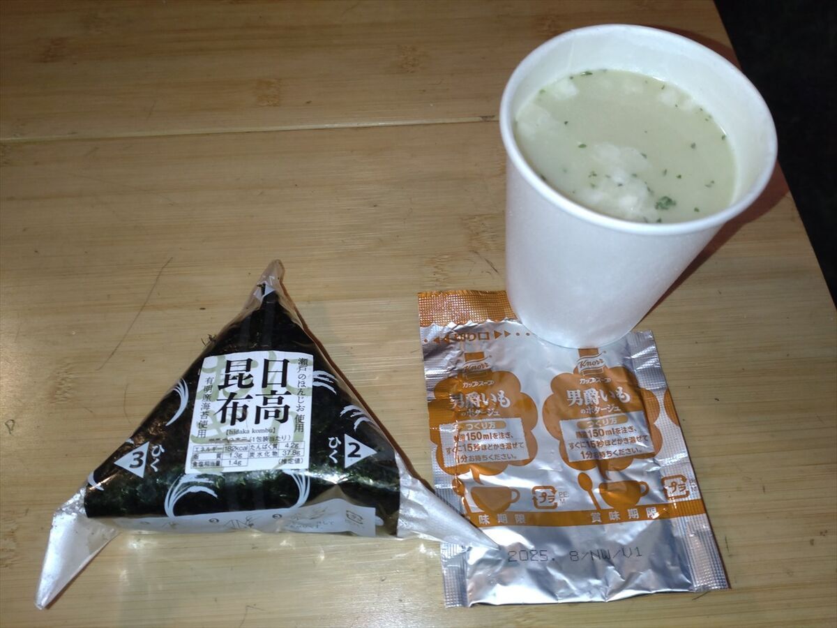 最後はおにぎりと即席スープです。