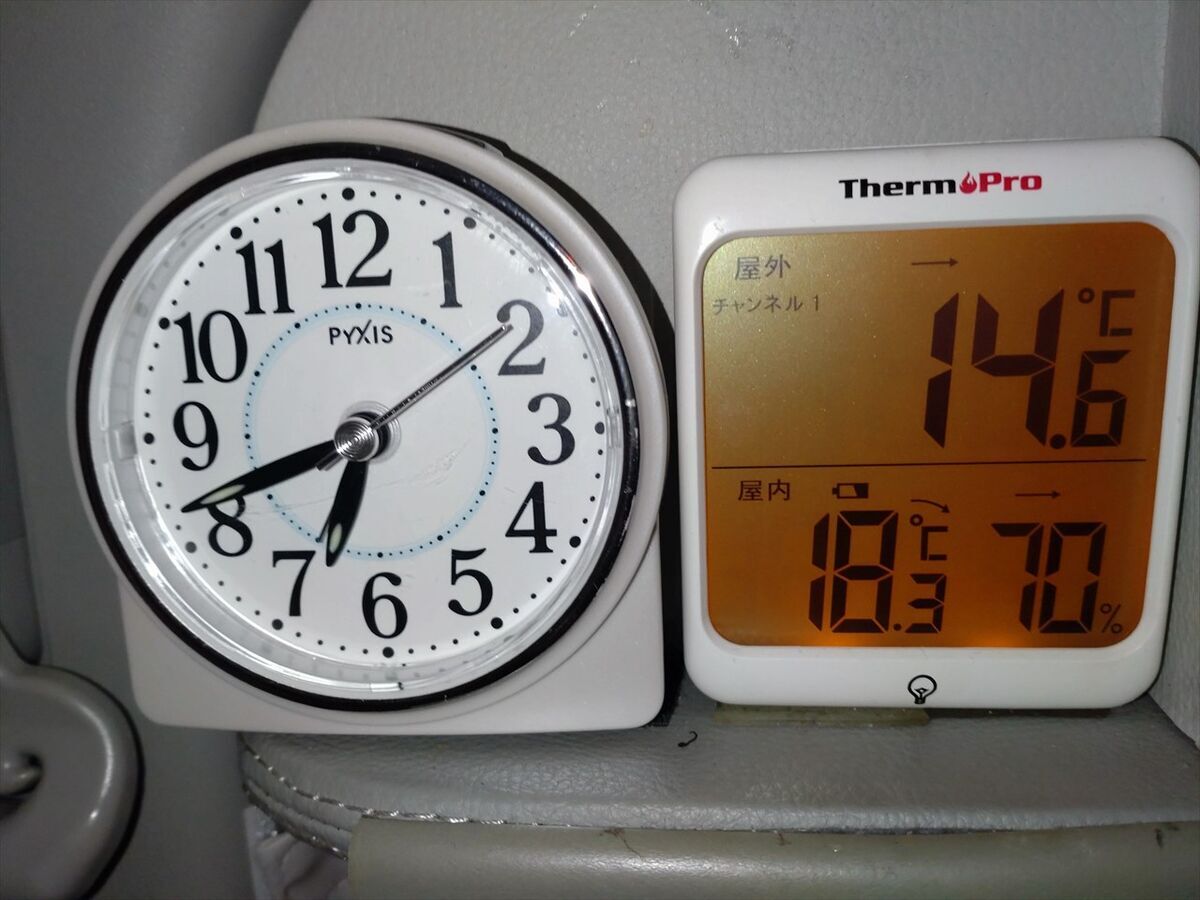 そろそろ起きましょう。今日は最初の道路通行止め時間になる前にゆとりを持って8時には出発予定です。
