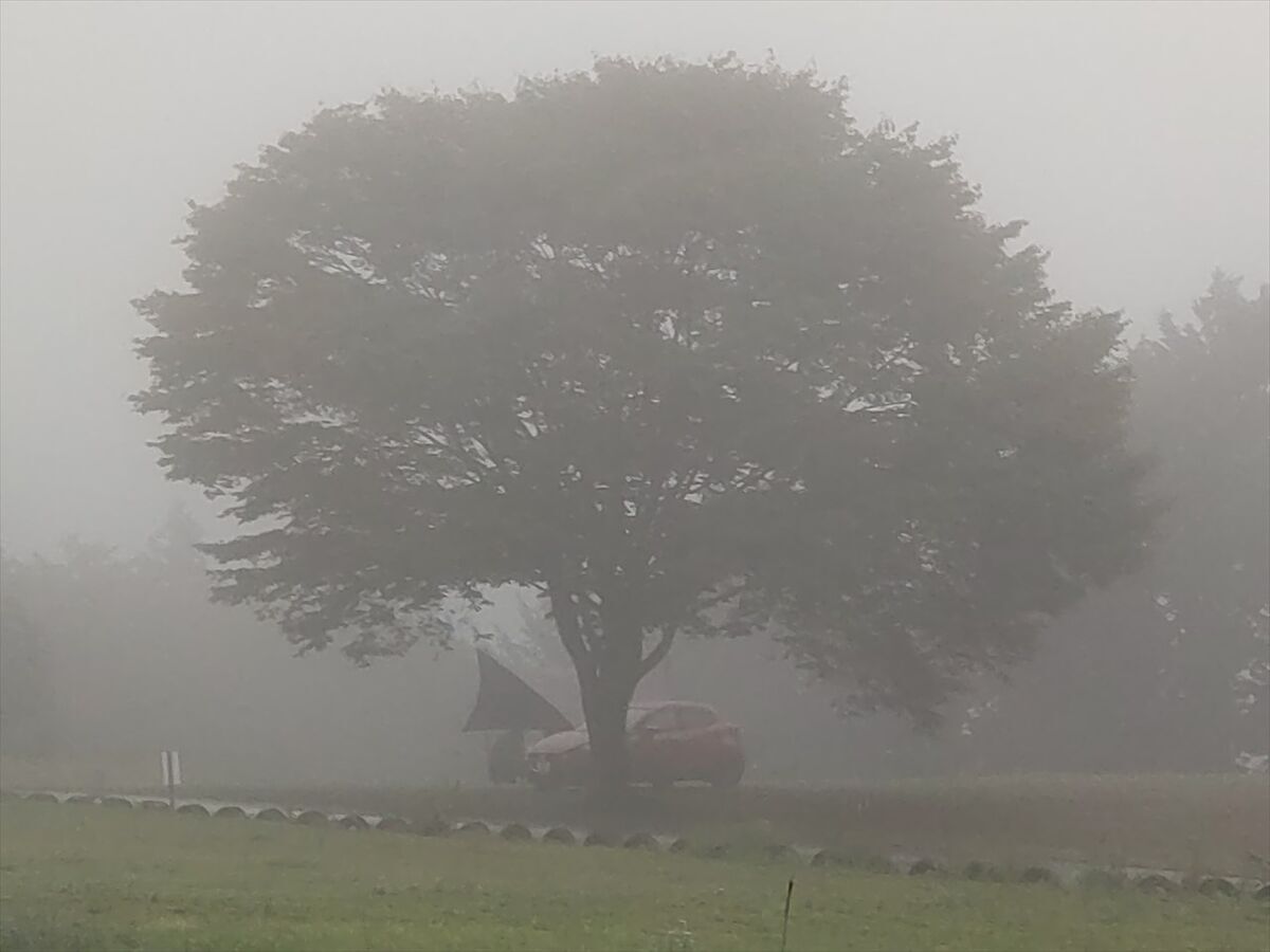 小雨が降り続いていて霧も出てきました。