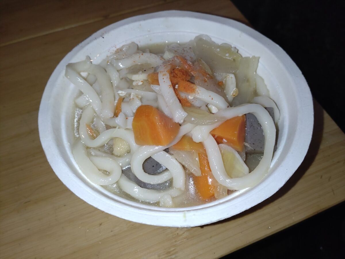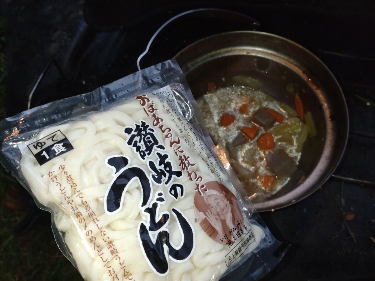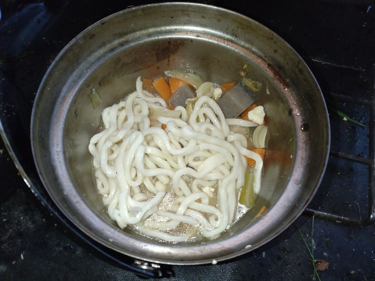 残り半分のお汁にうどんを入れて温めます。