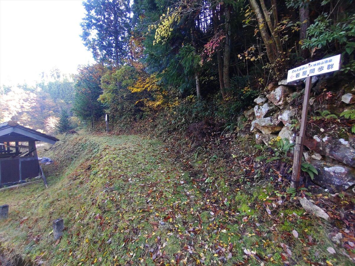 最初のジオキャッシュが隠されている岩屋鉱山昭和間歩遺構への入り口まで来ました。