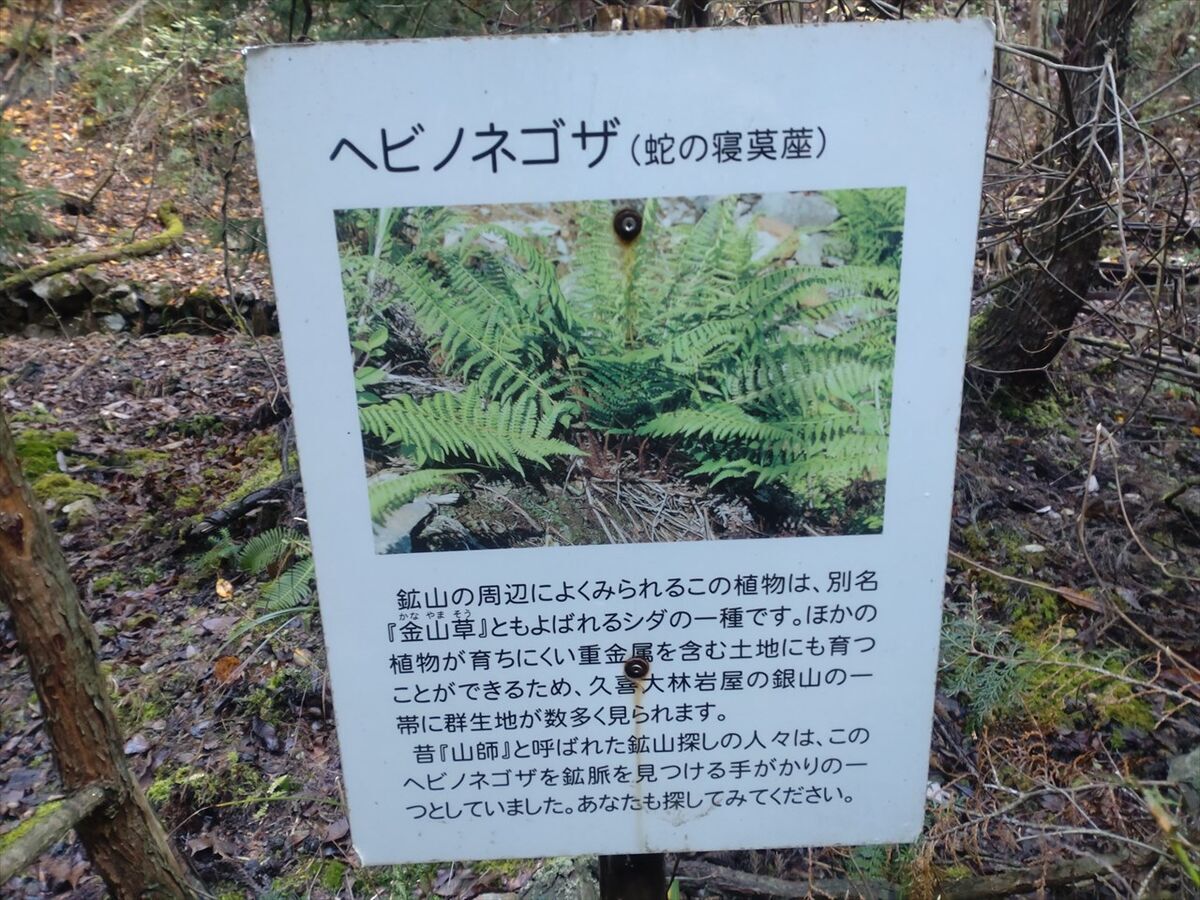 鉱脈を見つける手がかりになるヘビノネゴザの説明があります。