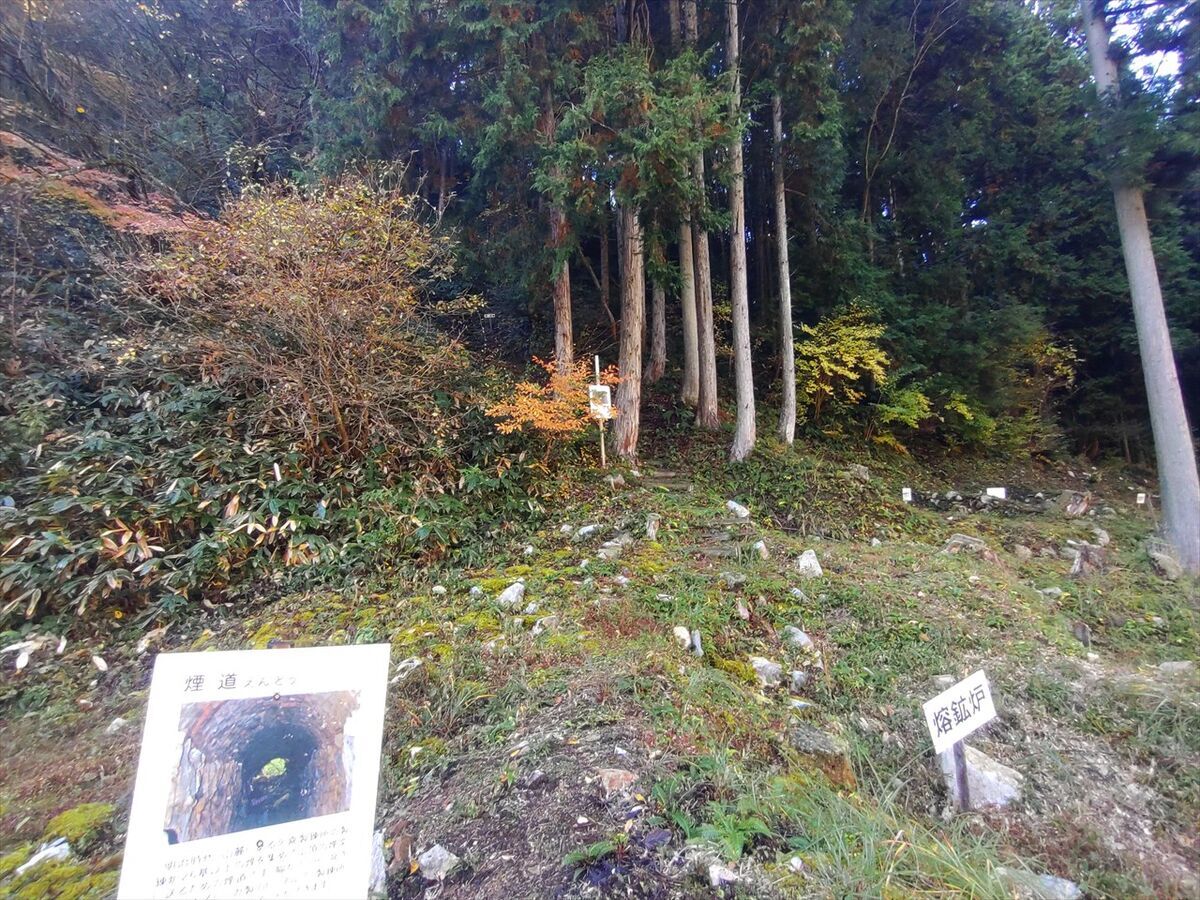 駐車場の右奥は精錬所跡があります。