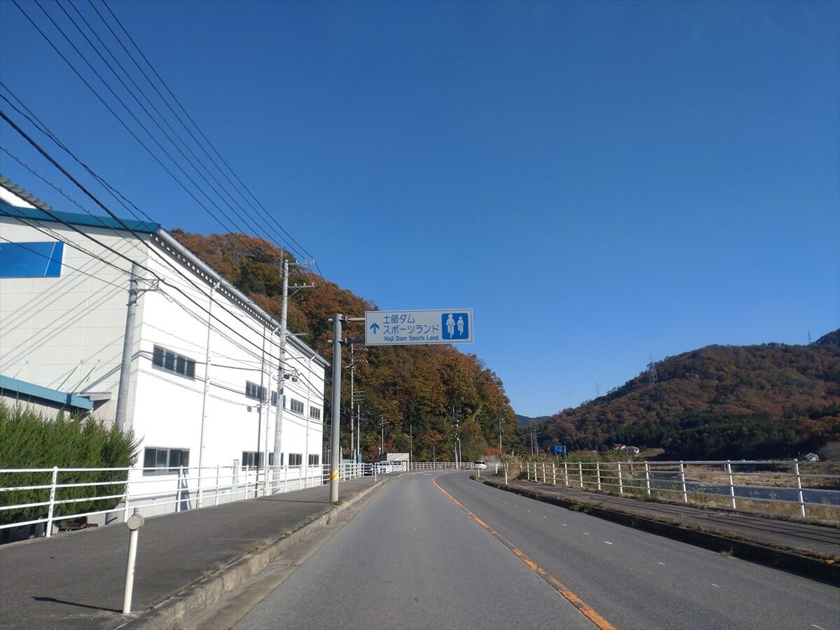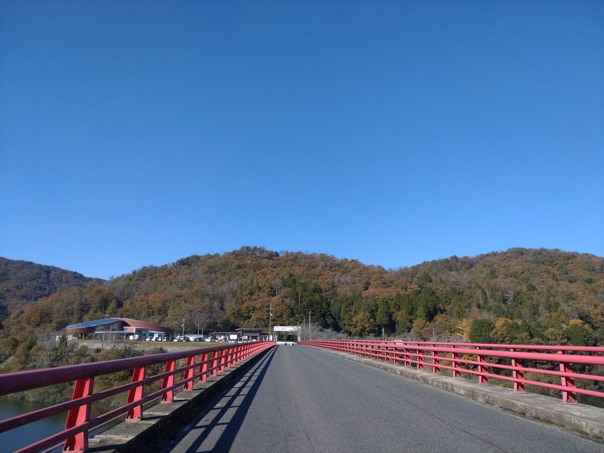 赤い橋を渡り左が土師ダムサイクリングターミナルです。