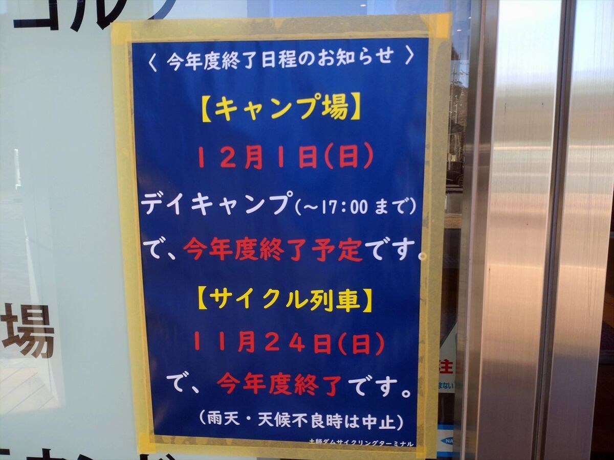 キャンプ場の冬季閉鎖の案内が出ていました。