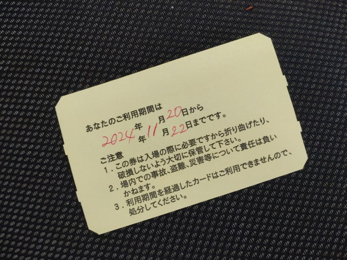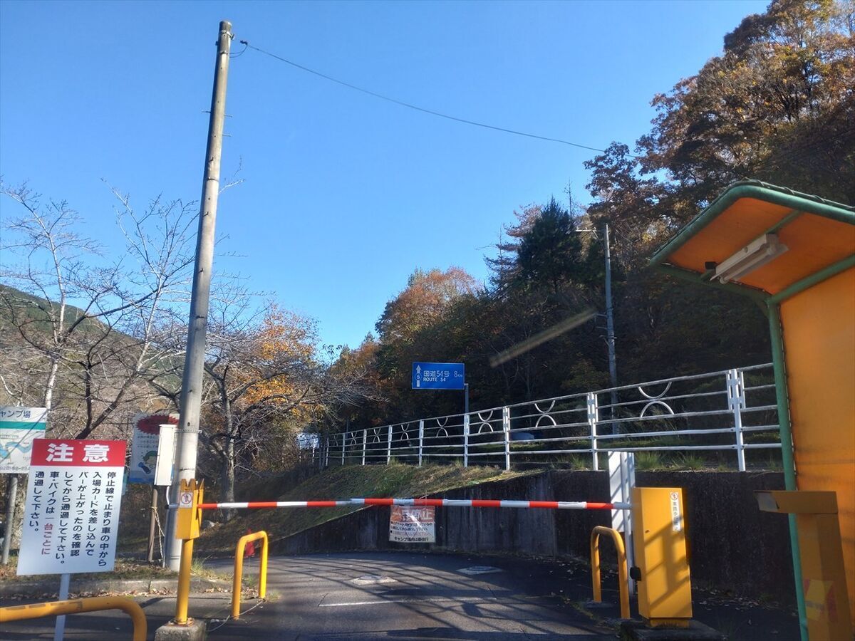 キャンプ場入口のゲートを開けるカードを受け取って出発です。