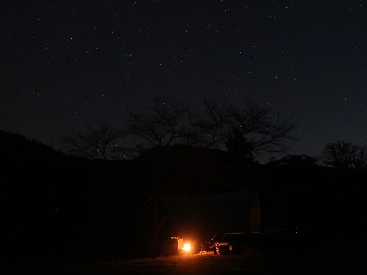 焚き火の灯りだけで写してみました。