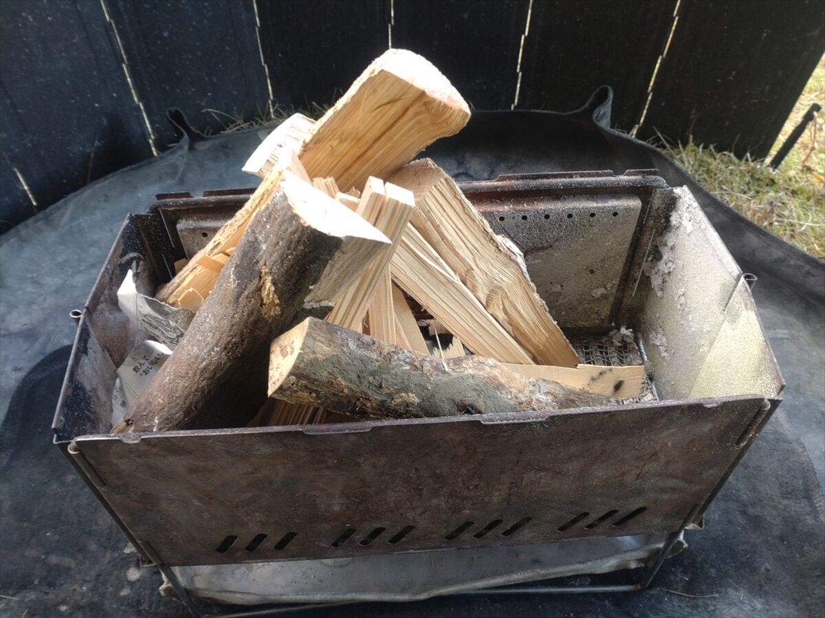 乾いた薪を燃やしながら乾燥していない薪を加えて燃やしましょう。