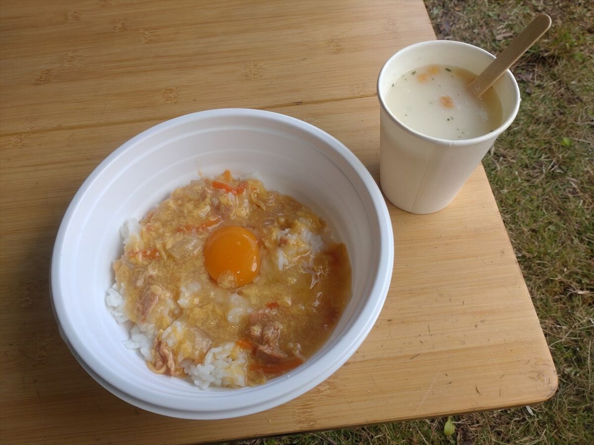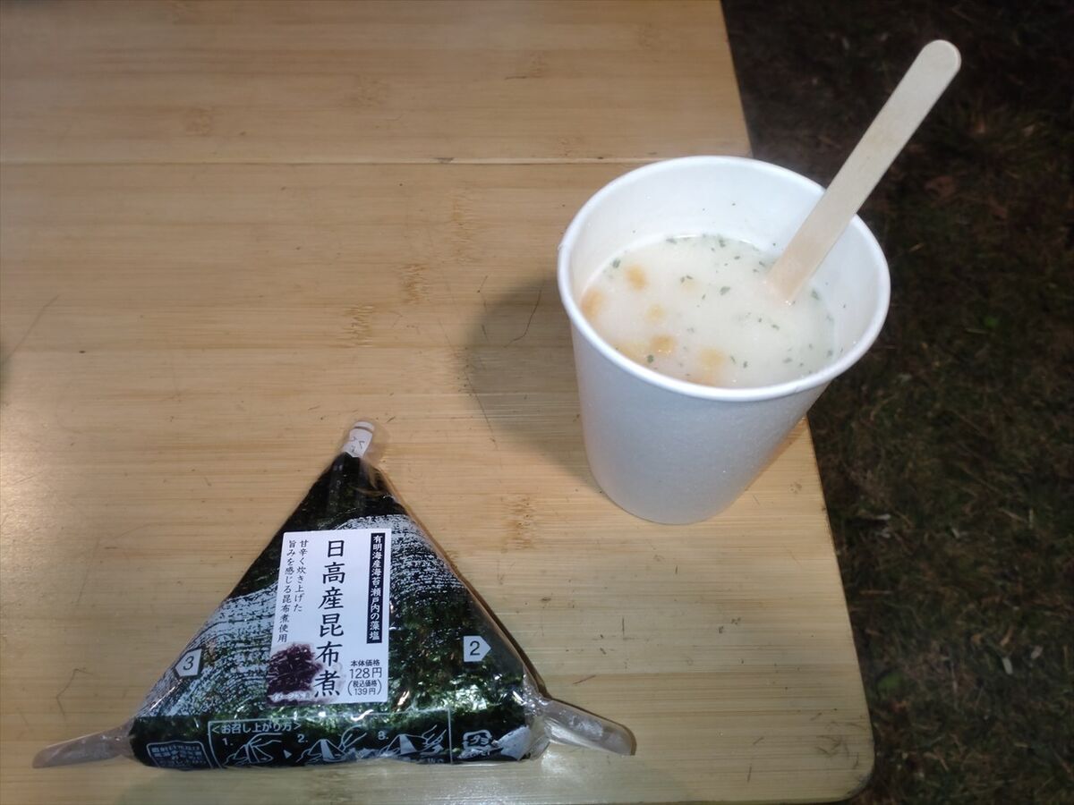 最後はおにぎりと即席スープです。