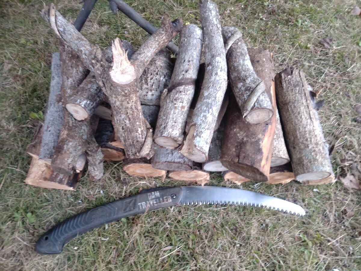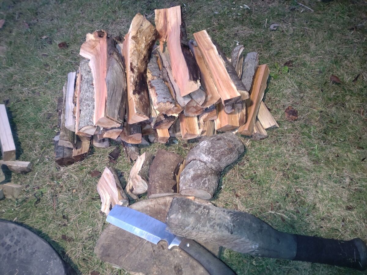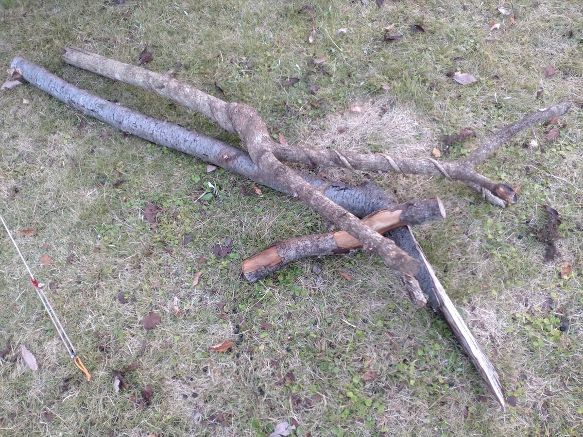 朝から焚き火を絶やさず薪を燃やしていると消耗が早く、木を拾ってきて薪作りもしておきました。