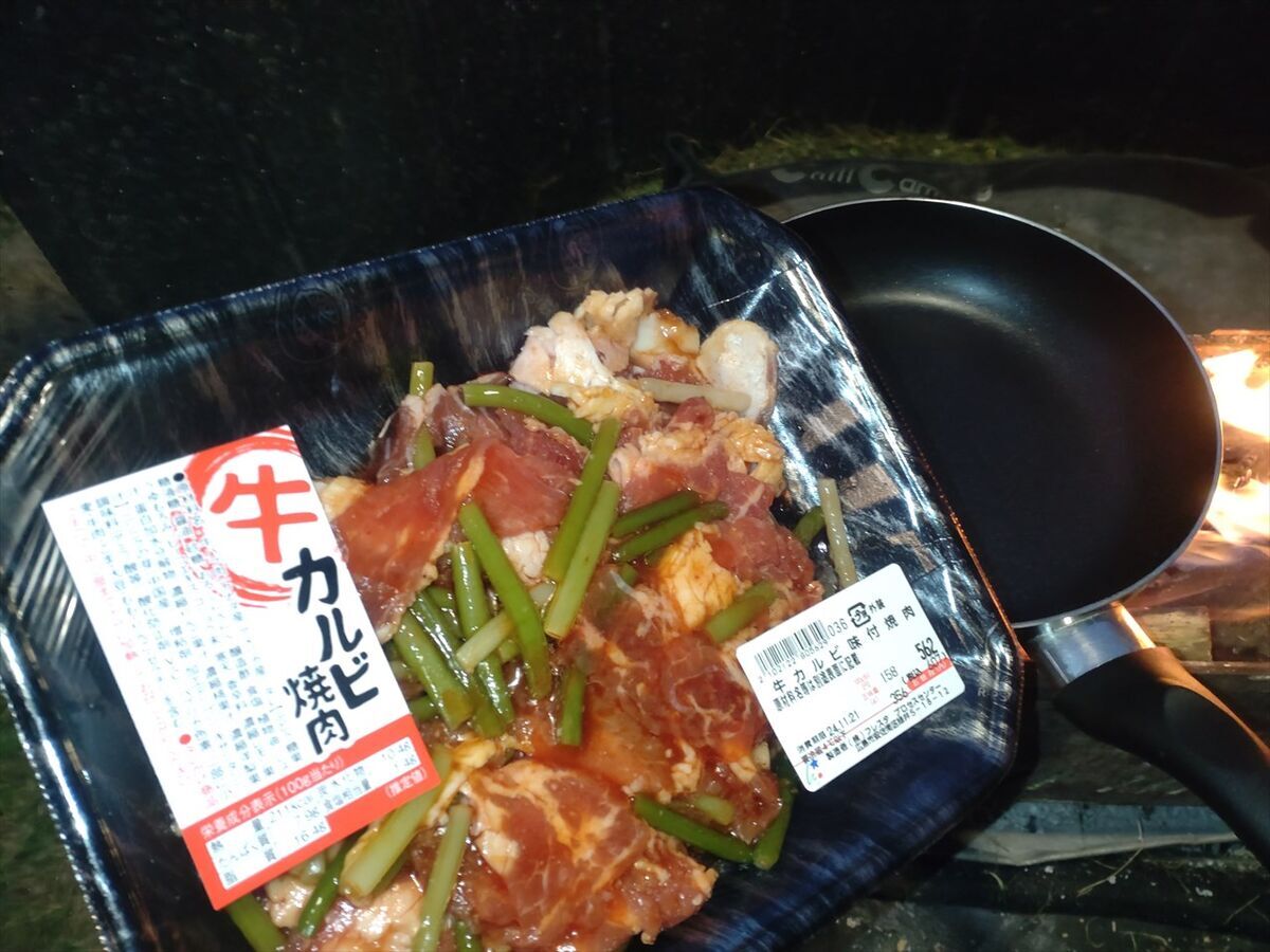 今日も2泊分の食材の買い物です。今日は豚肉では無いことを良く見て牛カルビにしました(^^)