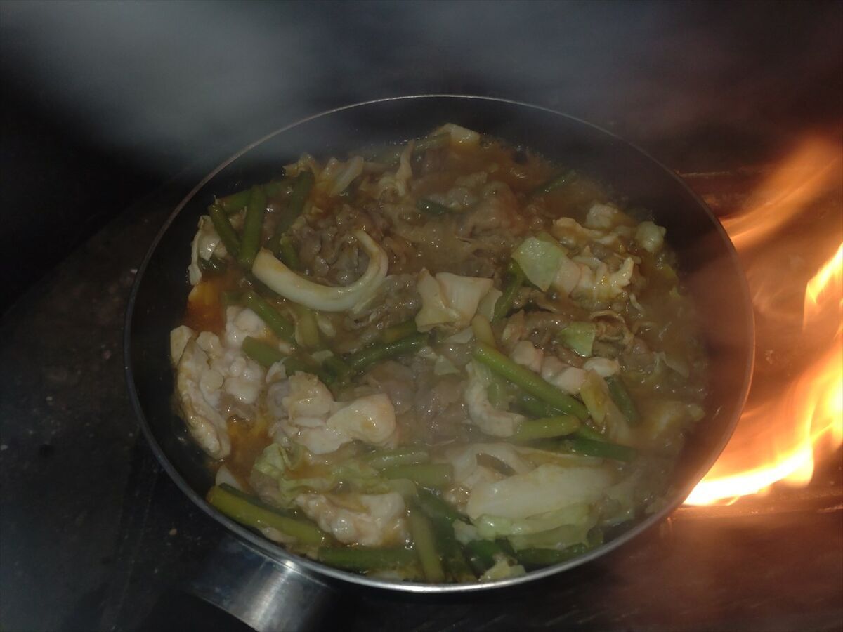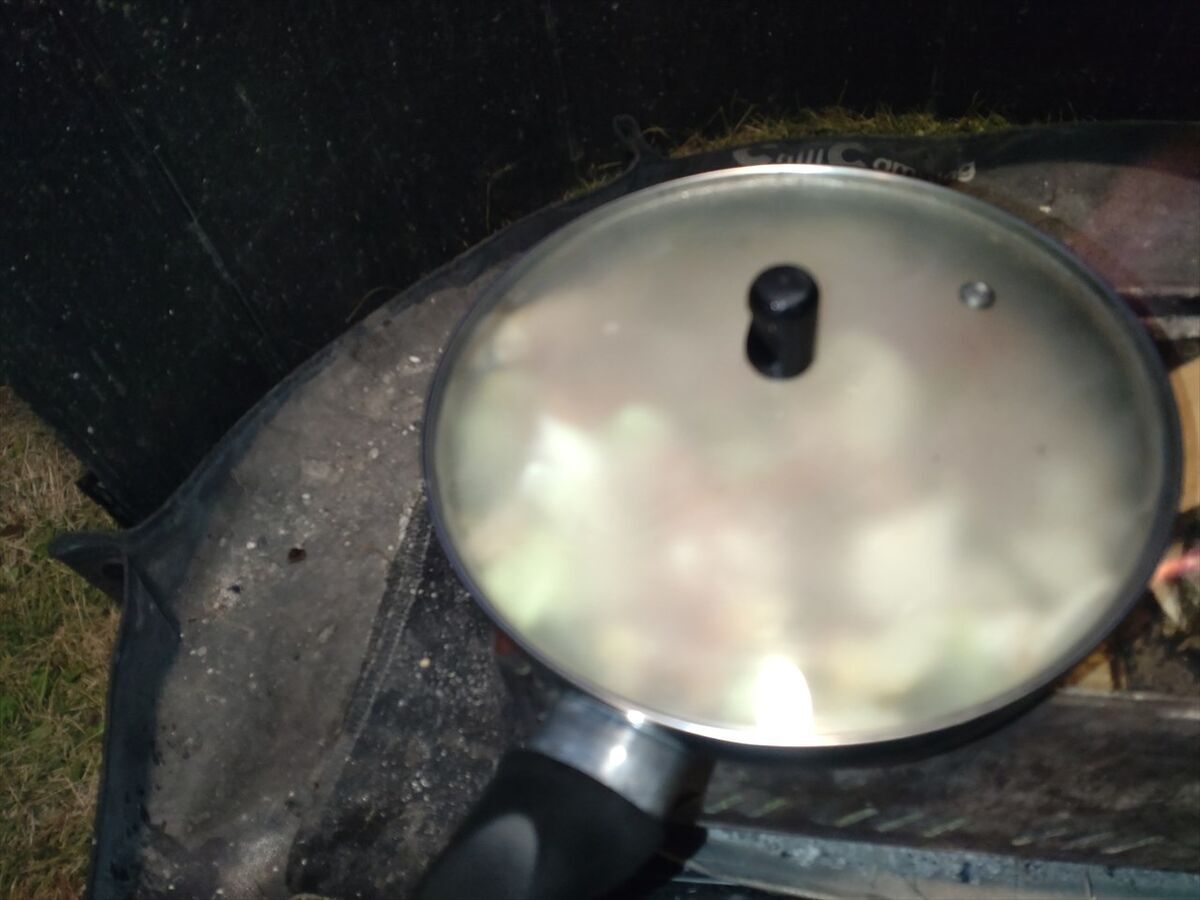 軍原キャンプ場で作った薪も朝から燃やし続けたので、残り1/3以下になりました。長時間どんどん燃やすと消耗が早いですね(^^;