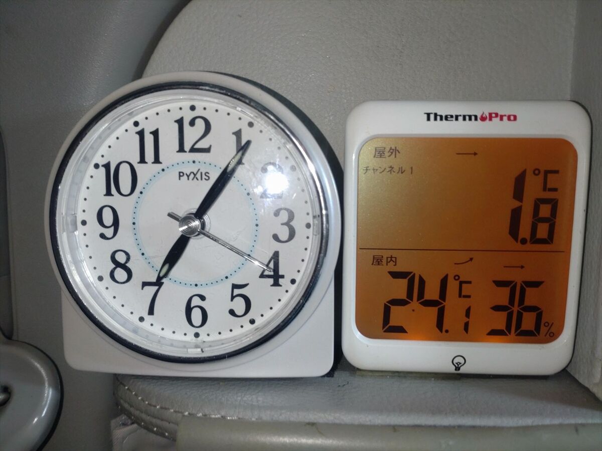 車内はFFヒーターのおかげで24.1度と暑いくらいでした(^^)