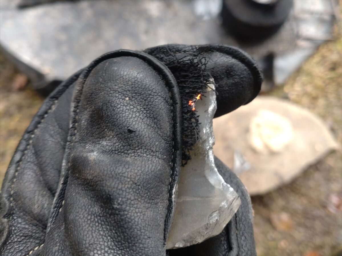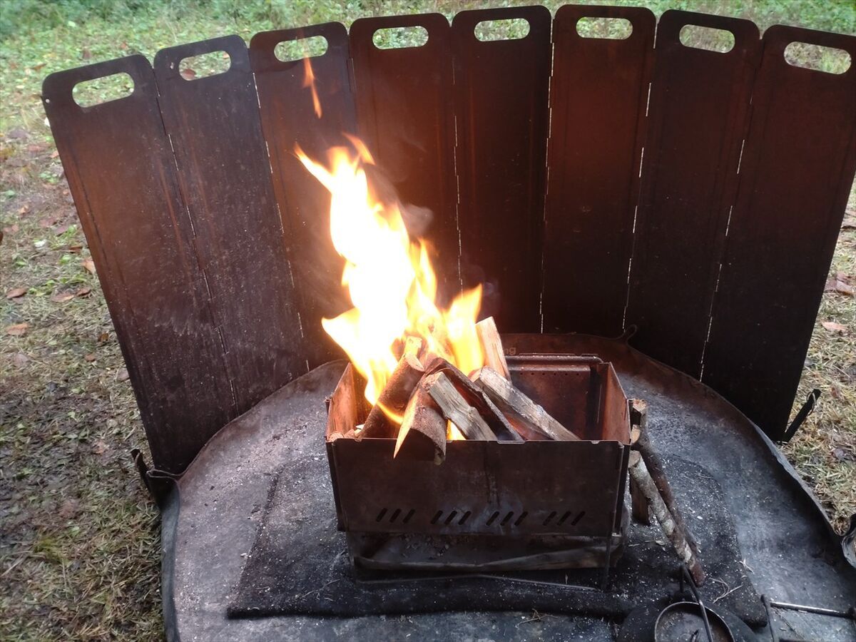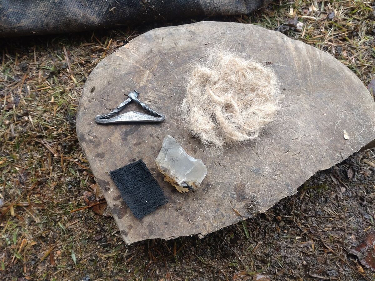 麻の上にチャークロスを置いてもう少し火を広げようと息を吹きかけたら、そのまま麻から炎が上がってしまいました。こんなに火の着きが良い時もあるのですね(^^)