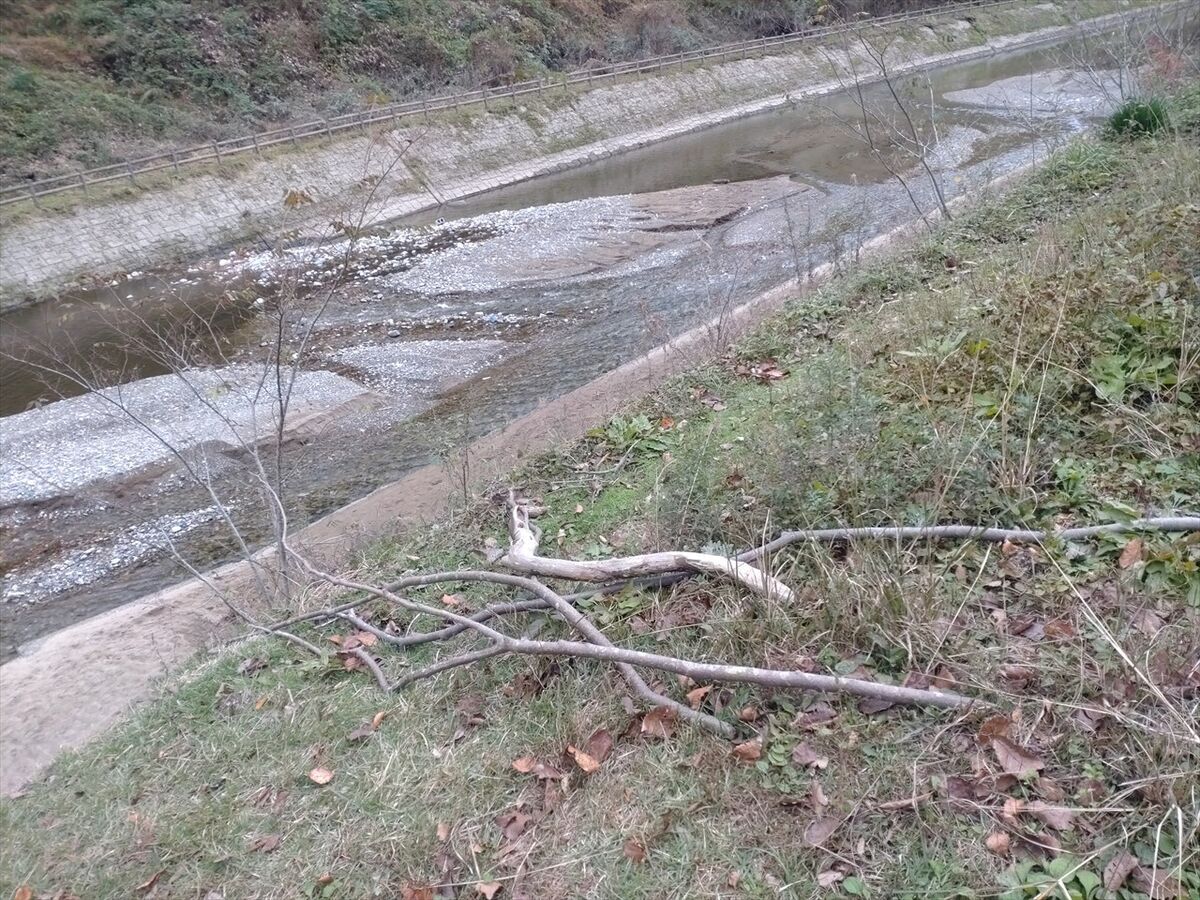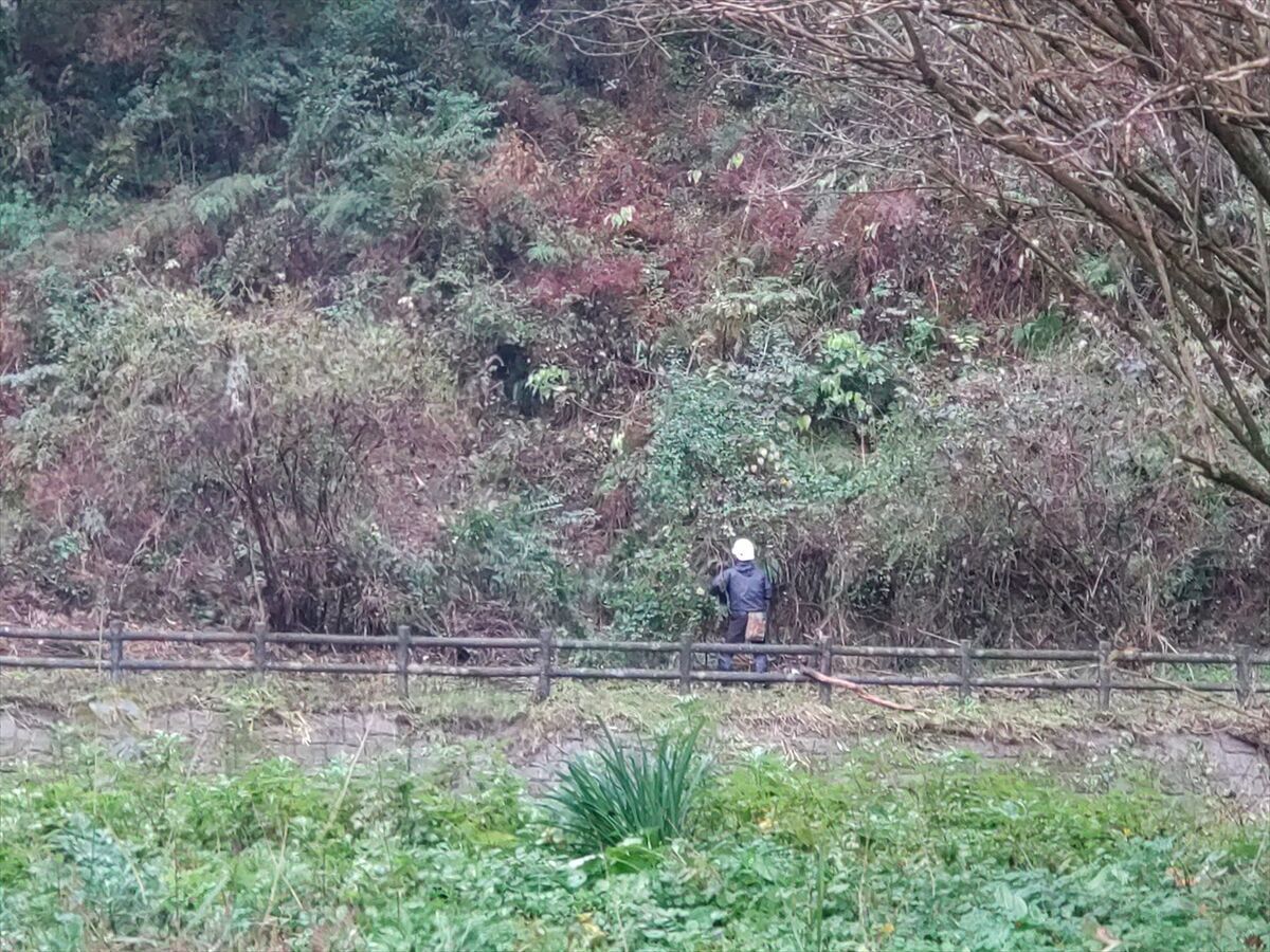 川の対岸とキャンプ場間で測量に来られていました。路肩の工事などが行われるのでしょうか。