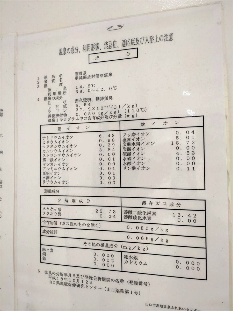 温泉分析表です。泉質名はなしと書かれていますが単純温泉のようです。