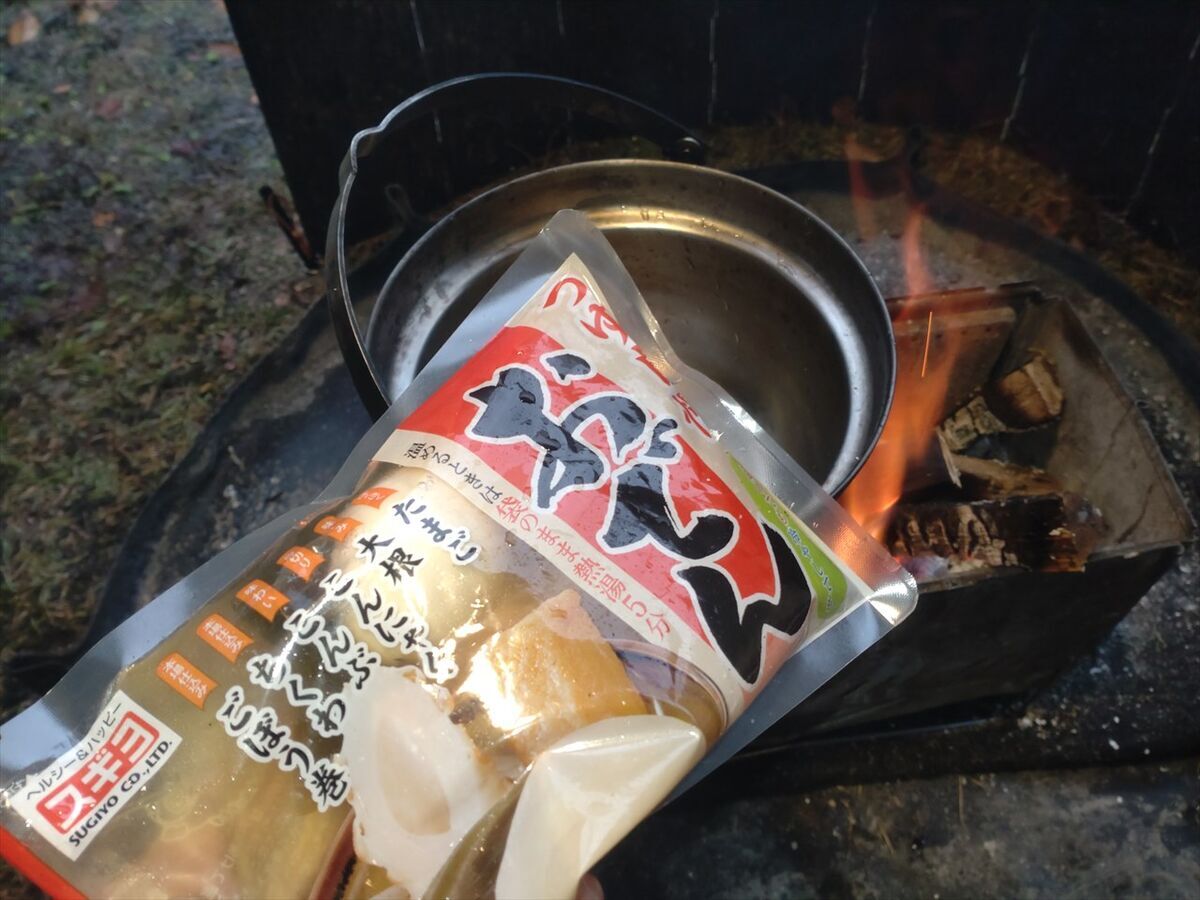 車内に入り焚き火が使えないので電子レンジで加熱します。
