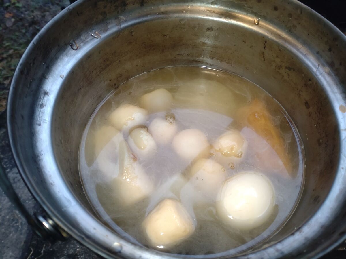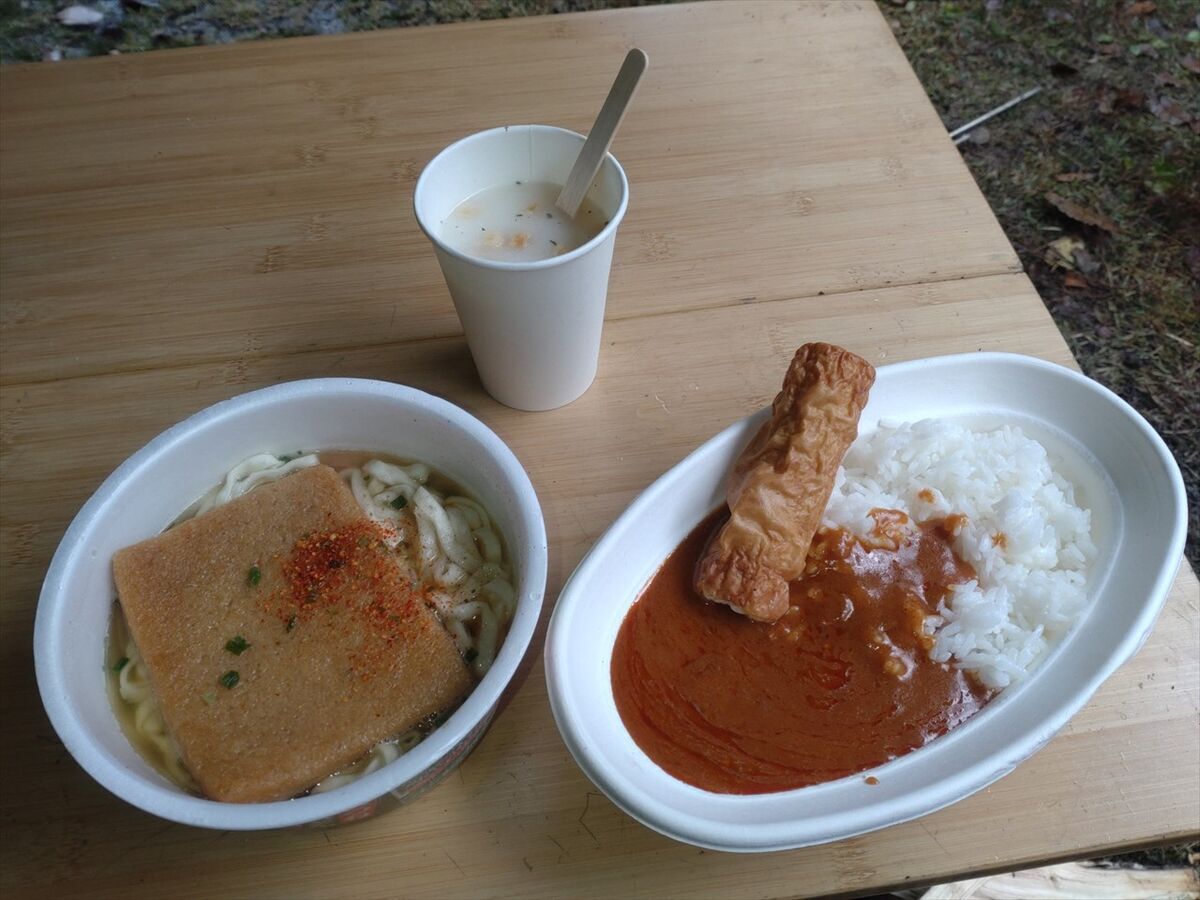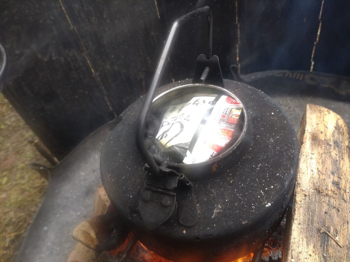 カップ麺のお湯沸かしに併せてケトルでカレーを温めました(^^;