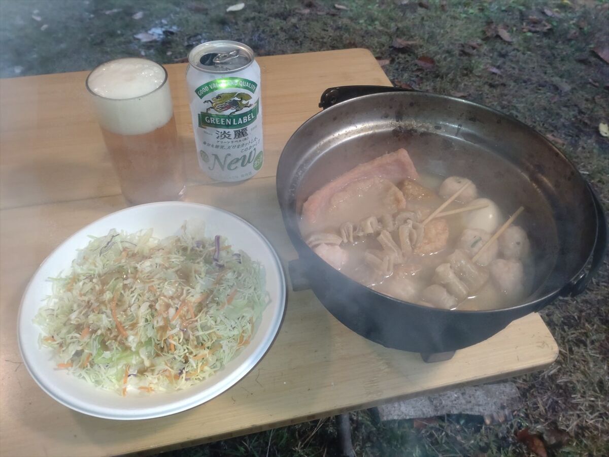 キャンプ旅10日目に乾~杯! 昨日ほどではありません寒くてビールがなかなか空きません(^^;