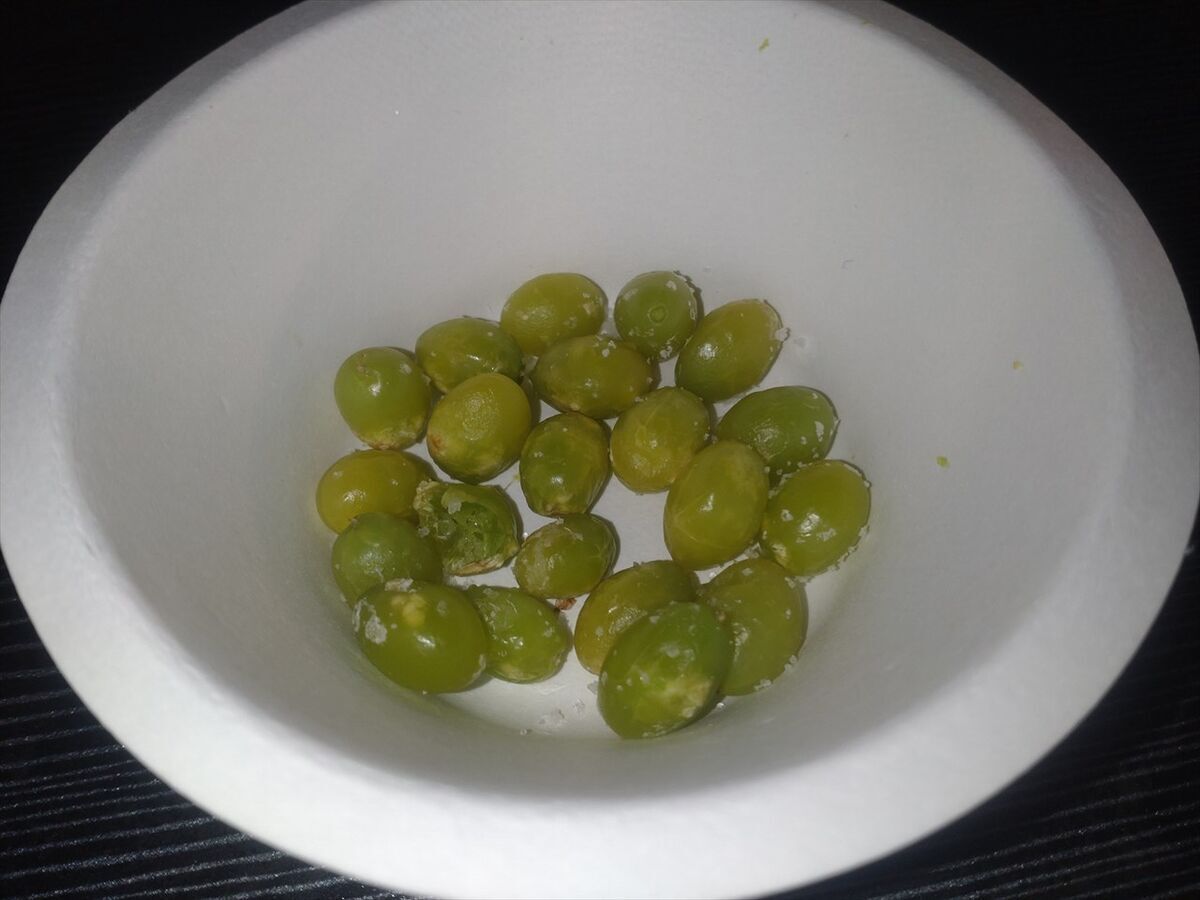 小粒だと薄皮も剝きにくいですが何とか剝き終えました(^^)