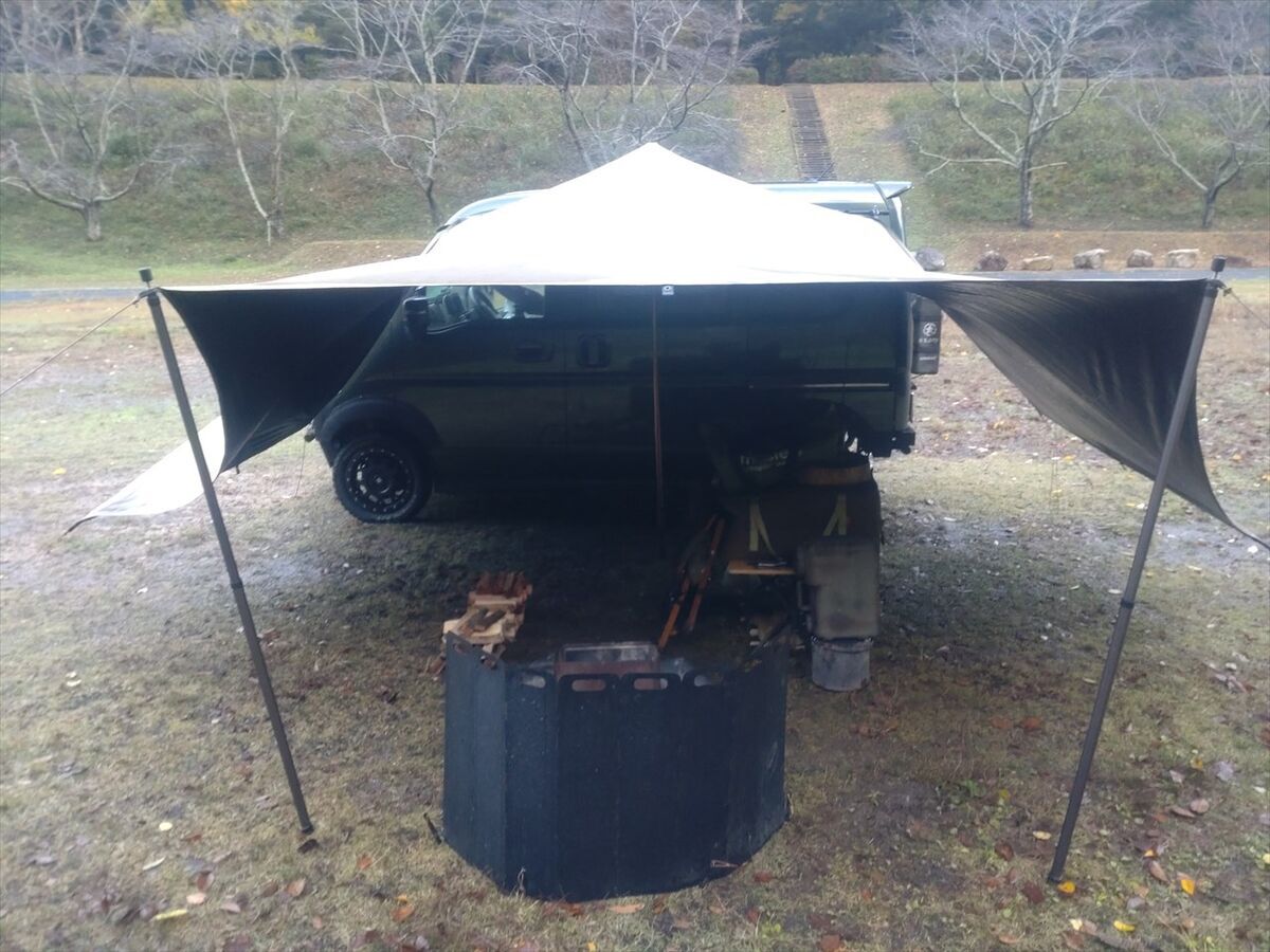 雨も止みませんし夕方には風も出てきて寒くなり、早めに車内に入りFFヒーターを作動させました(^^)