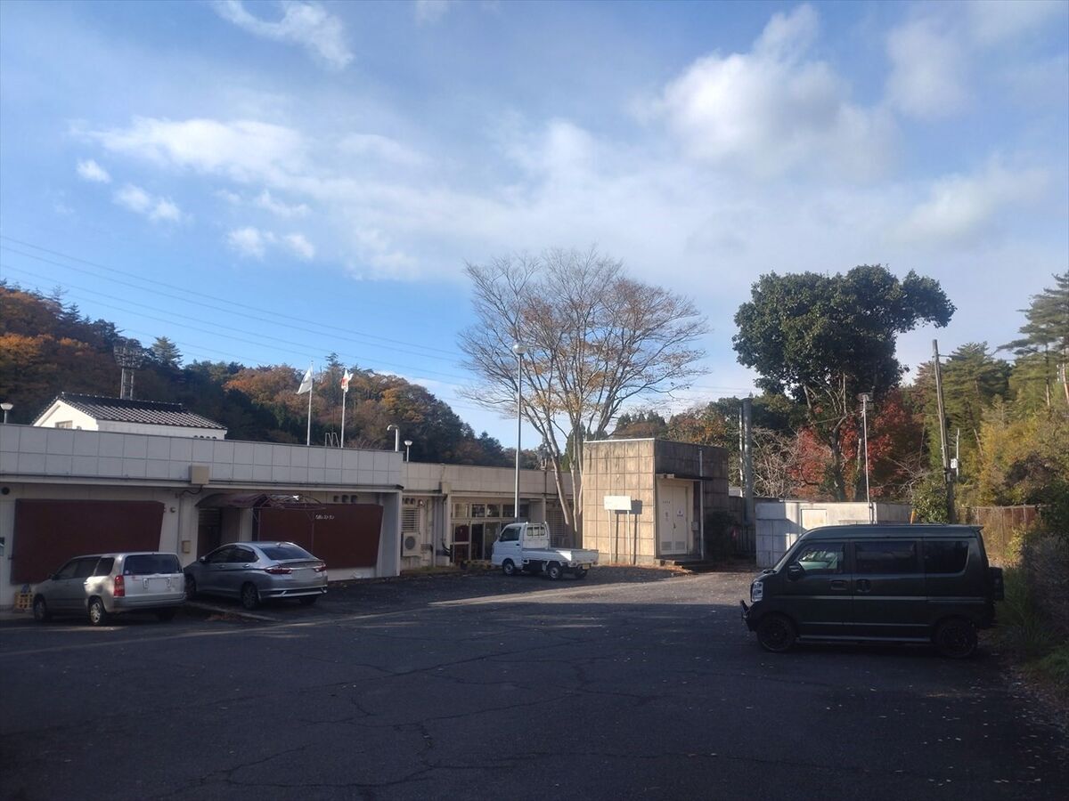 羅漢山青少年旅行村前に到着です。すぐ先にらかん高原 オートキャンプ場があります。