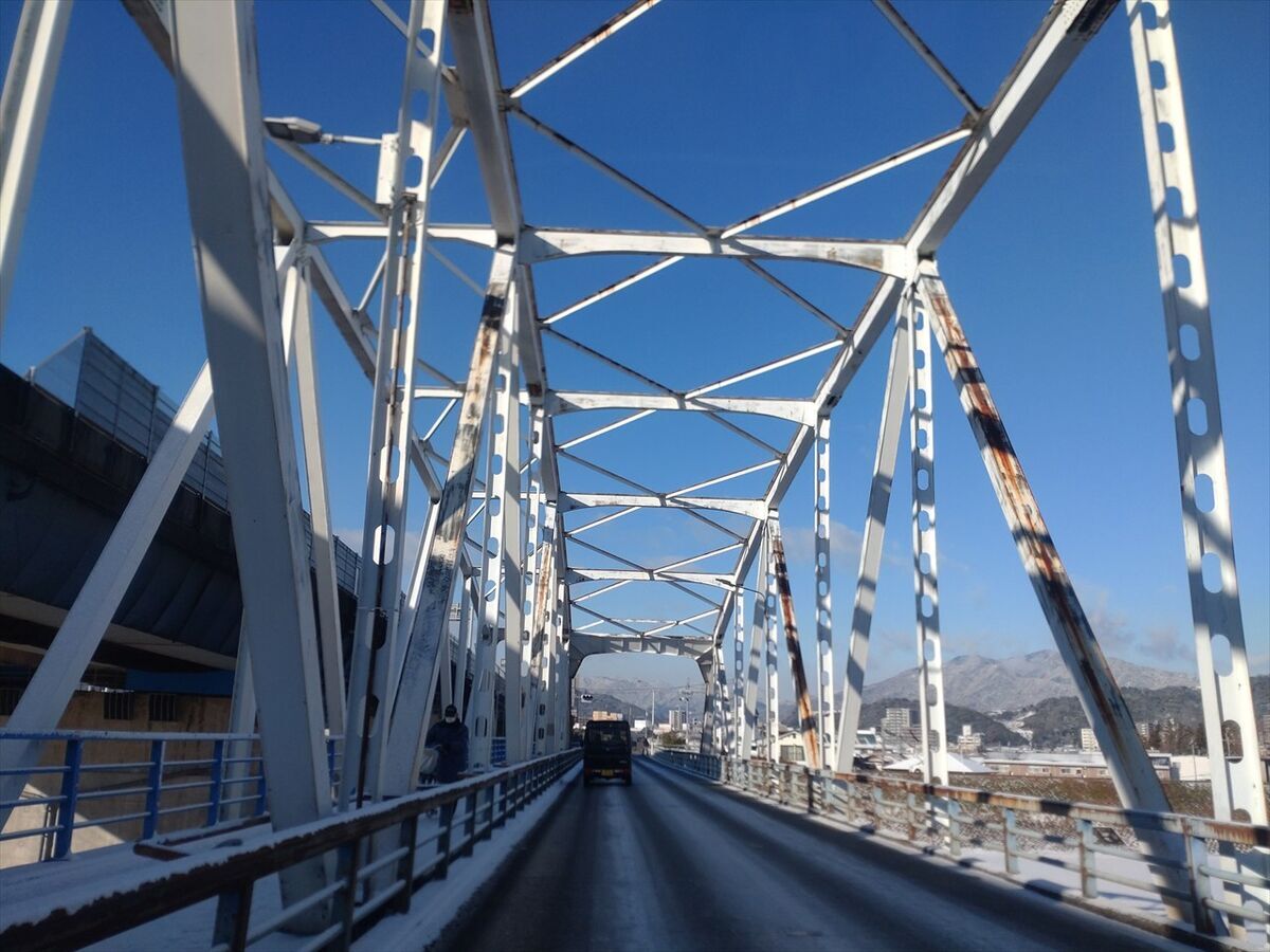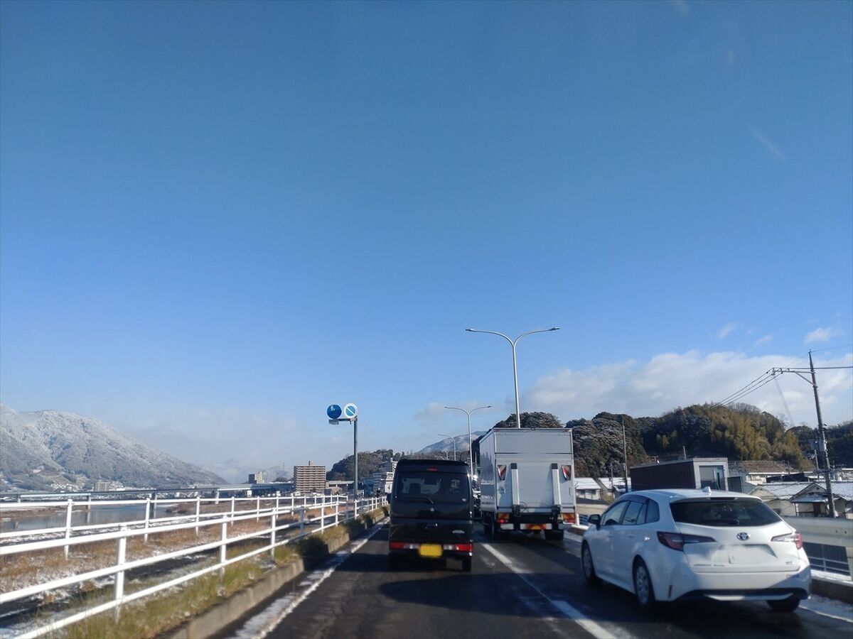 橋の上は特に凍結注意ですが、後ろに車が居ないことを確認の上ブレーキを少し強めに短く踏んでみると、スタッドレスタイヤのグリップが弱く滑ります。今朝の安佐大橋は日陰で凍結していました。