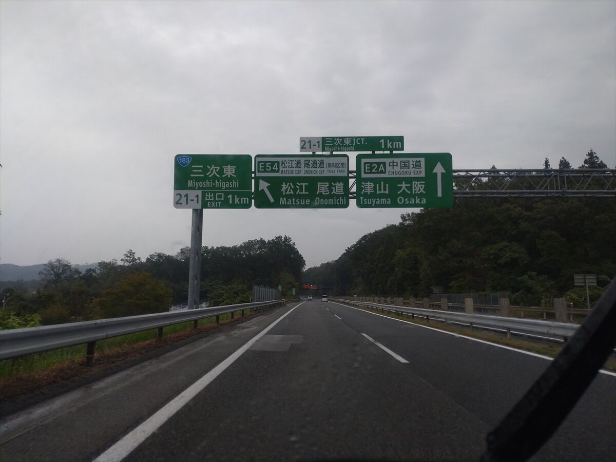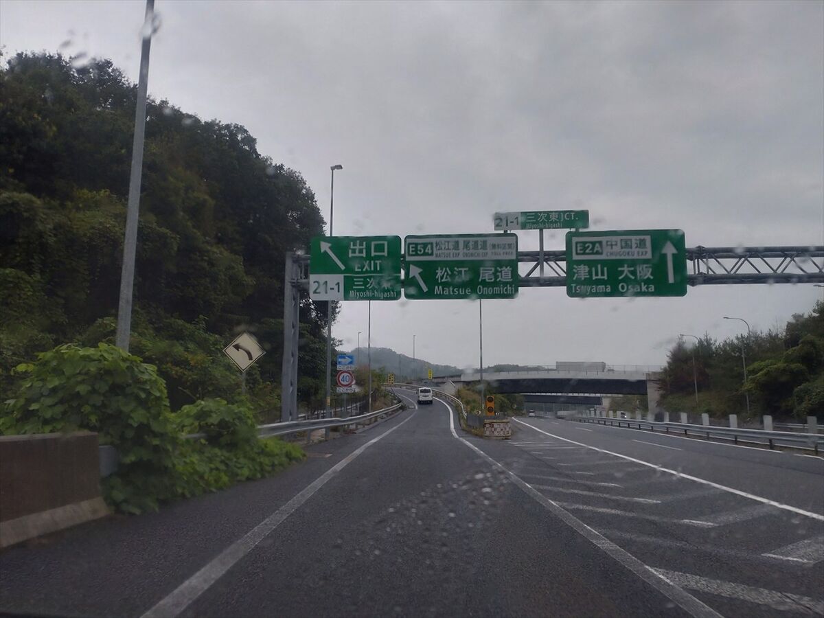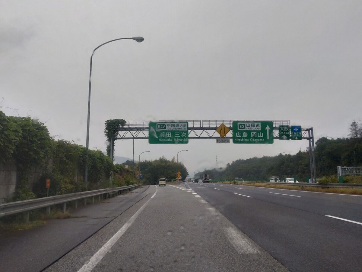 各所道路工事がされていて江の川PAから先は対向車線側を走るように規制されていますね。