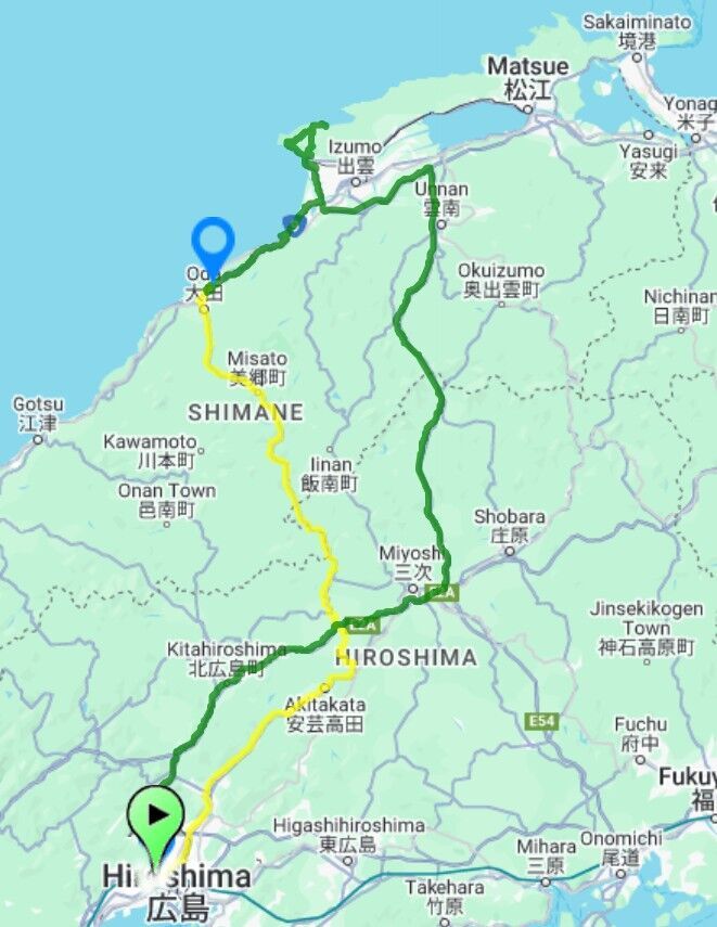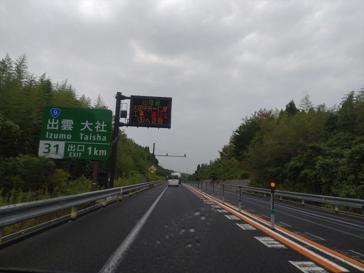 今日は五日市ICから高速道に乗り山陽道⇒中国道⇒松江道⇒山陰道と進み出雲市へ向かいます。