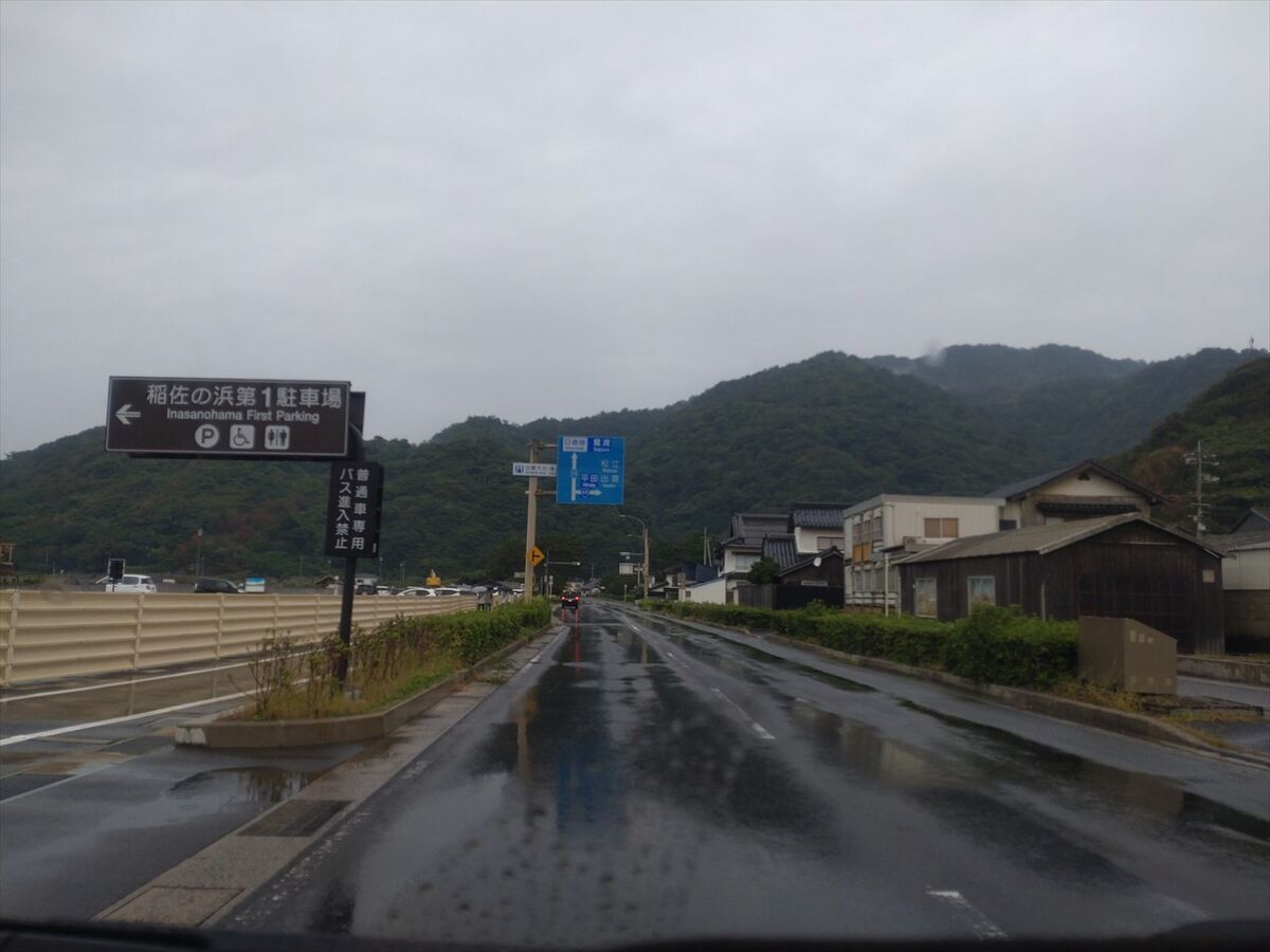 猪目洞窟の前を通過です。まもなく猪目海岸です。