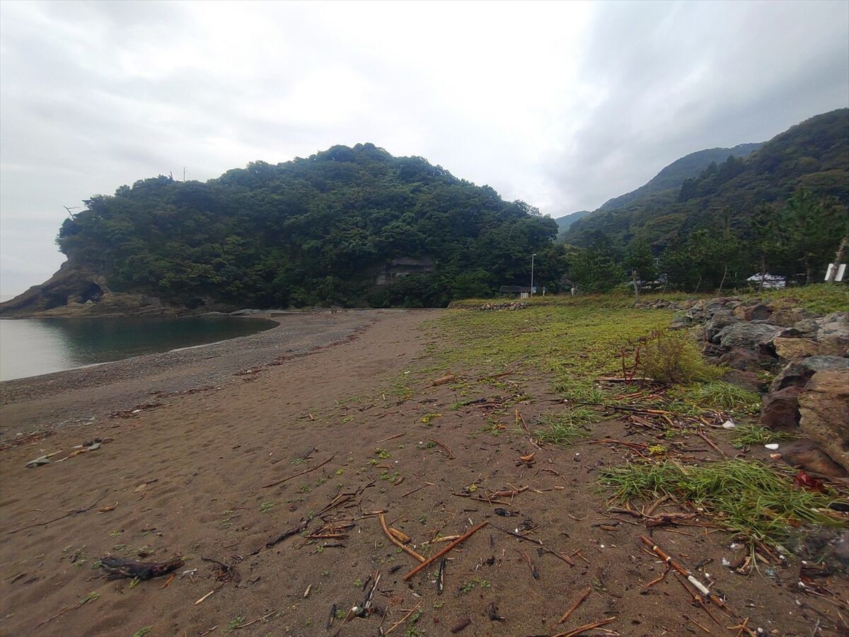 猪目海岸です。小さな海岸ですね。手前は砂ですが海岸べりには小石が沢山転がっています(^^)
