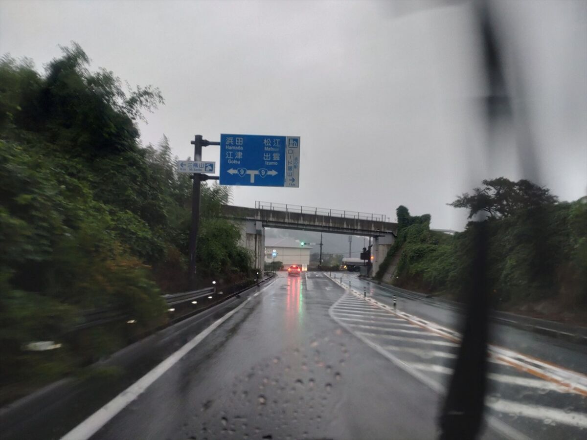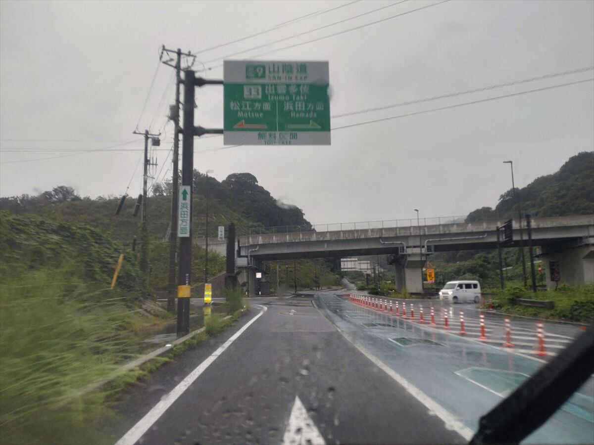 出雲多伎から高速に乗り無料区間で西に移動です。