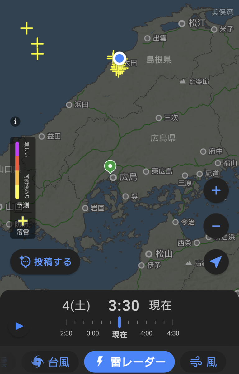 昨夜は深夜に雨が強くなり近くで雷もなりました(^^;