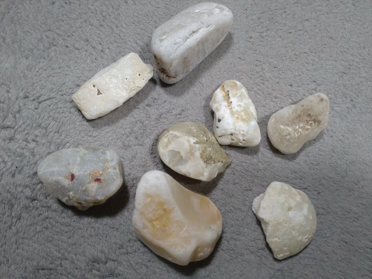 拾って来た中から白メノウかもしれないと思う石を区分してみました。