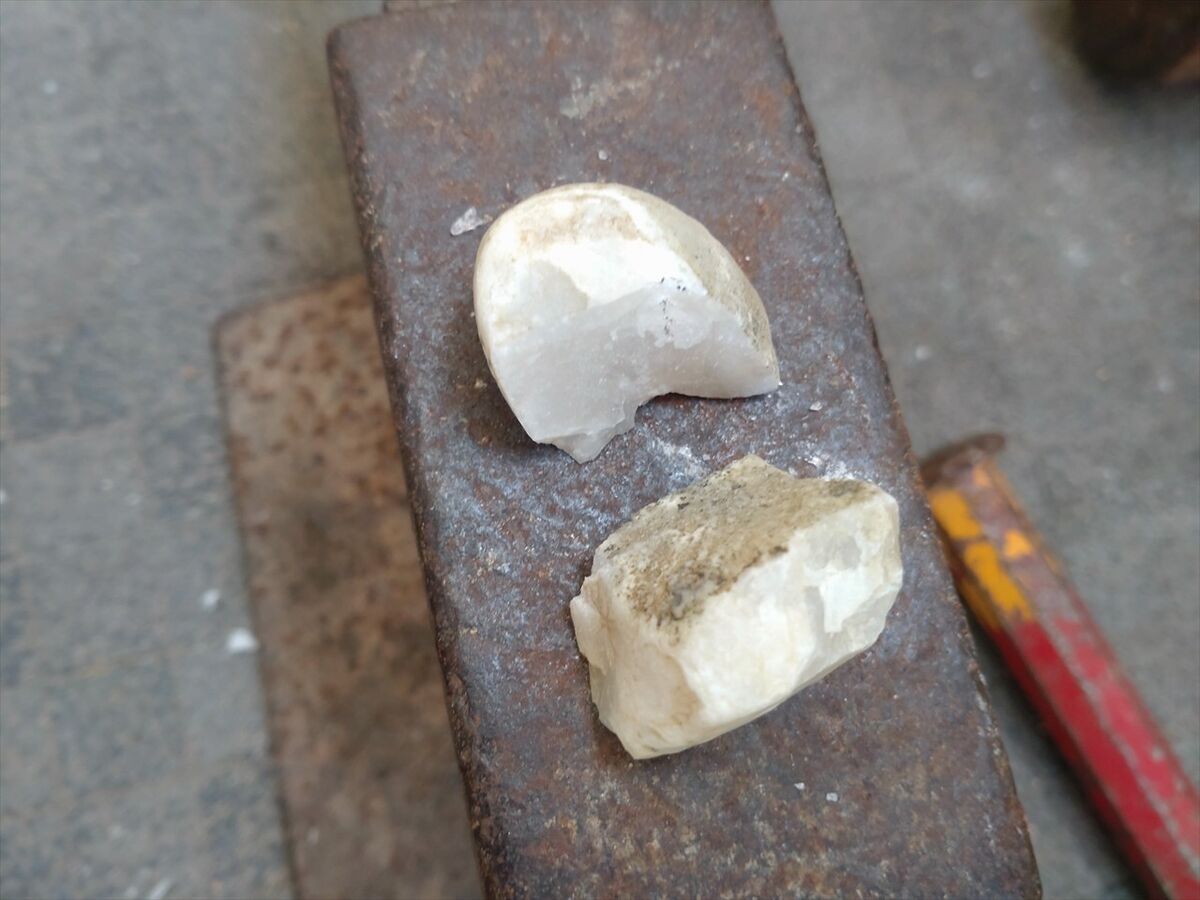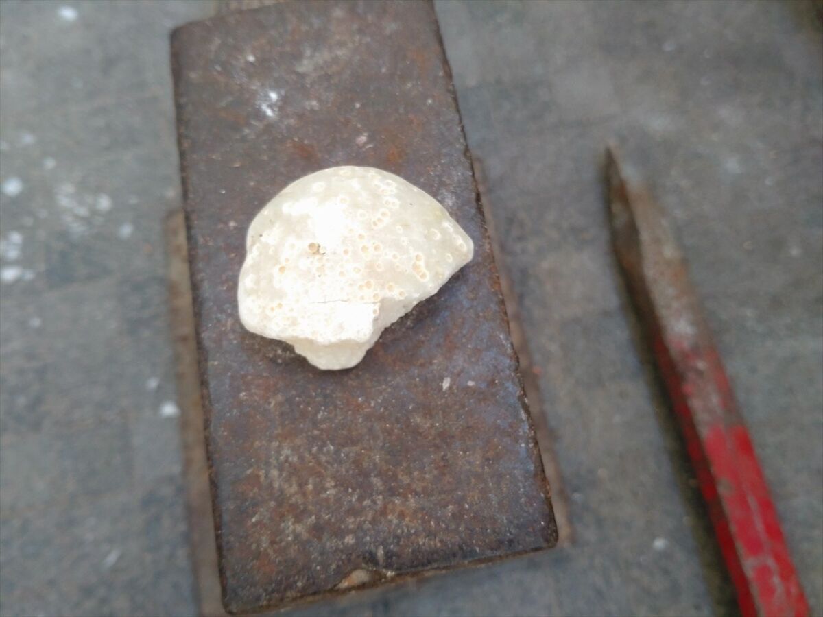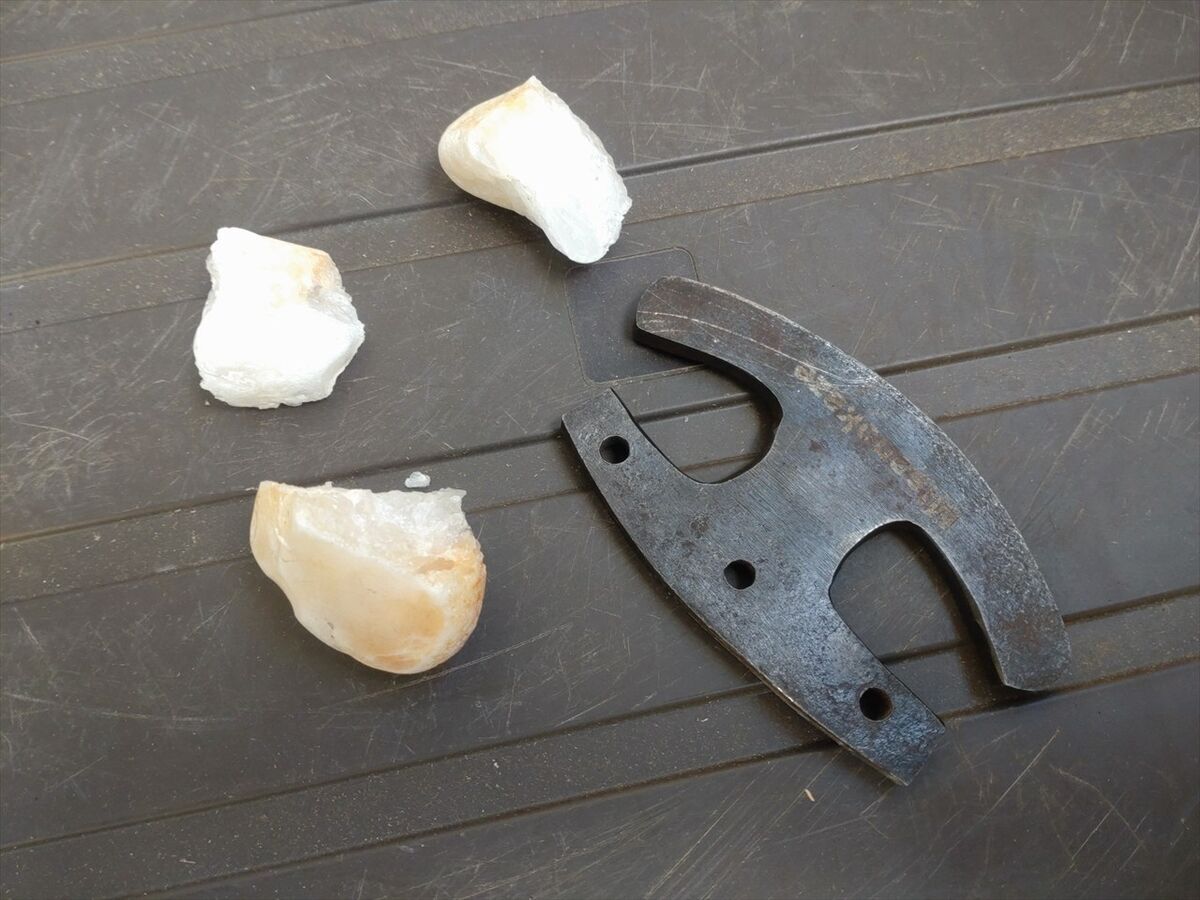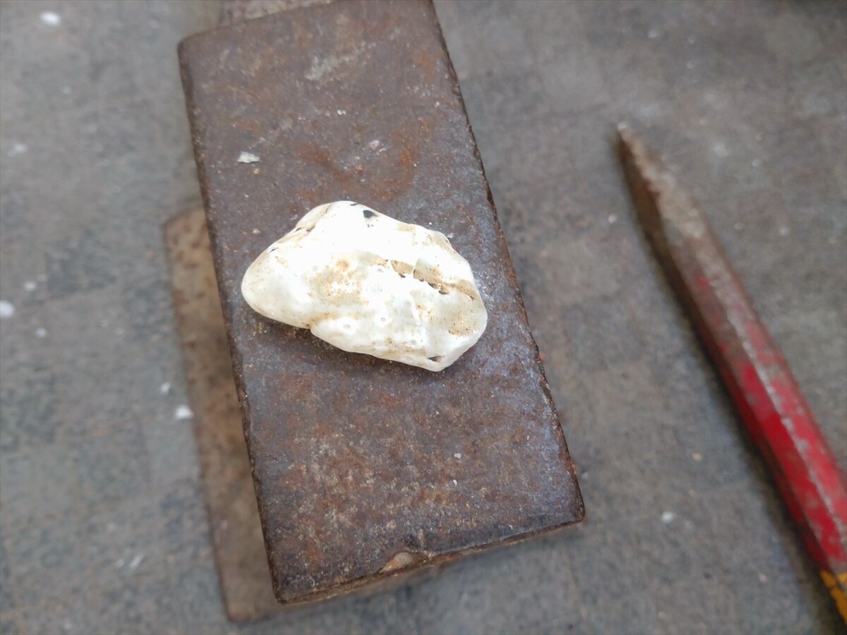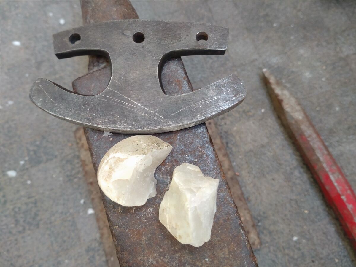かなり硬くてなかなか割れません。火打鎌を打ち付けても少ししか火花が出ません。