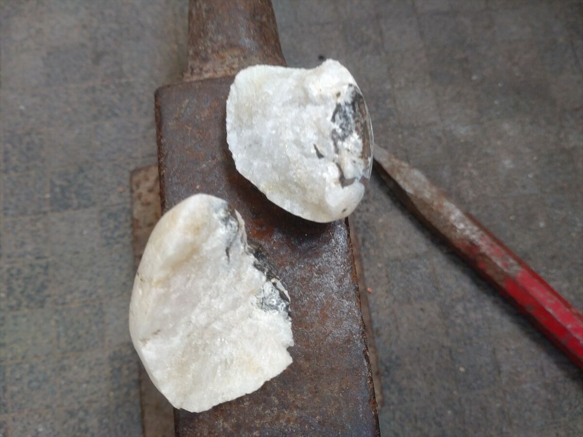 白くて良さそうでも割ると粉々に破片が出る石も火花は出ません(^^;