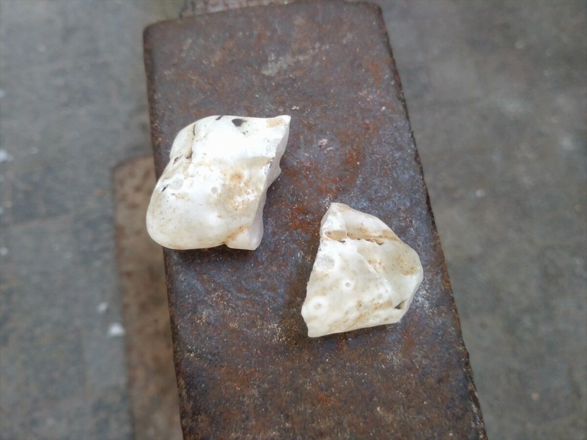 先日火打石を自作しようと出雲市猪目海岸に行き白メノウぽい石を拾ってきました(^^)