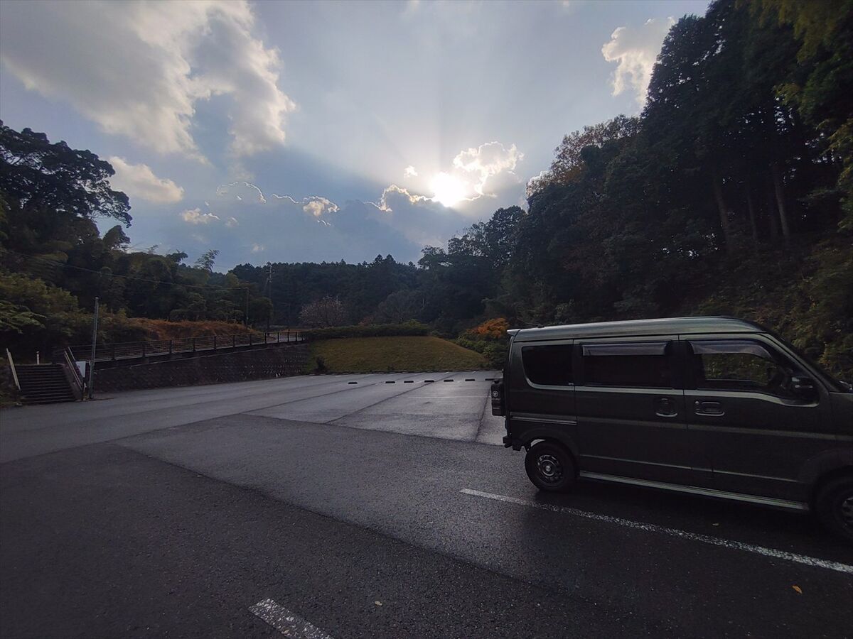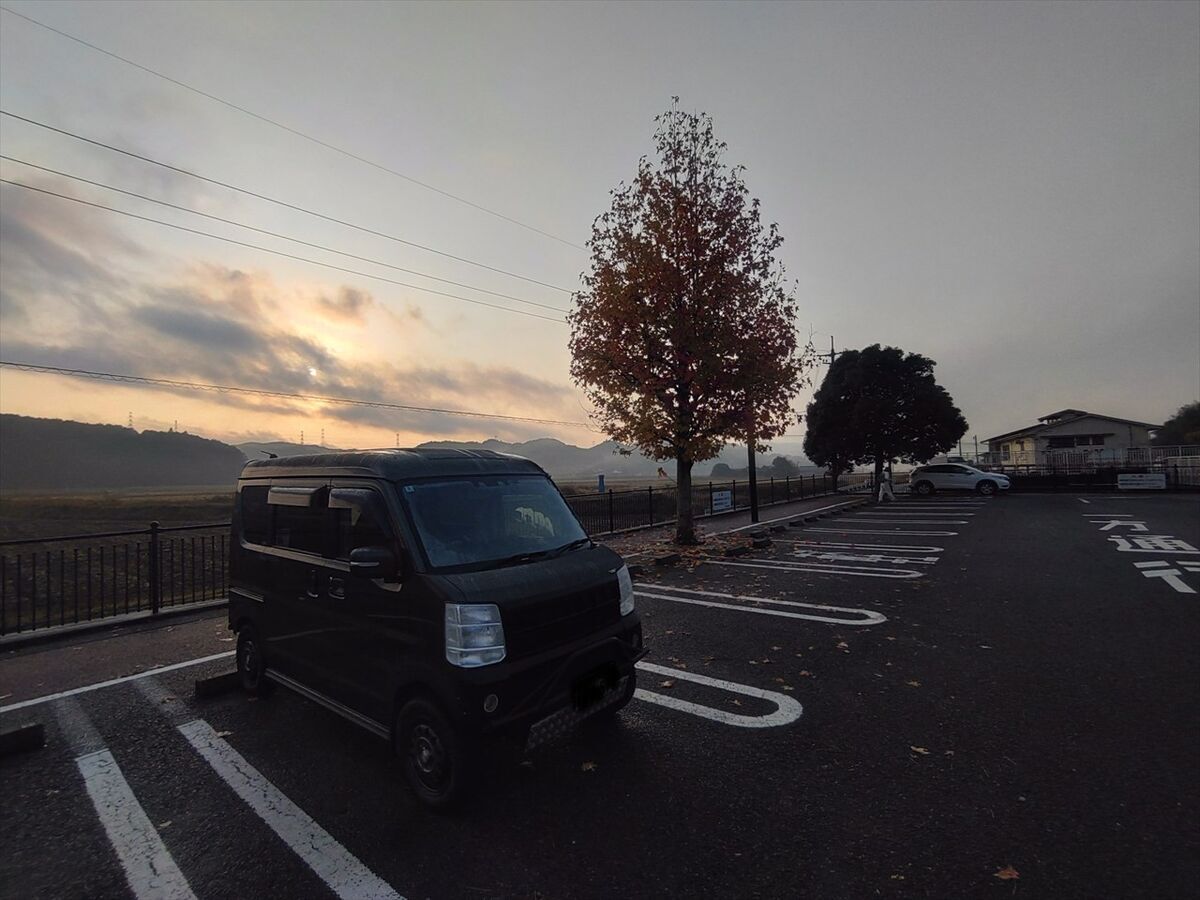 昨夜は連休も終わり車もぐっと少なくなり近くに停まっている車も無く夜中には雨が降り出し音がかき消されるので遠慮なくFFヒーターをつけて寝ました(^^)