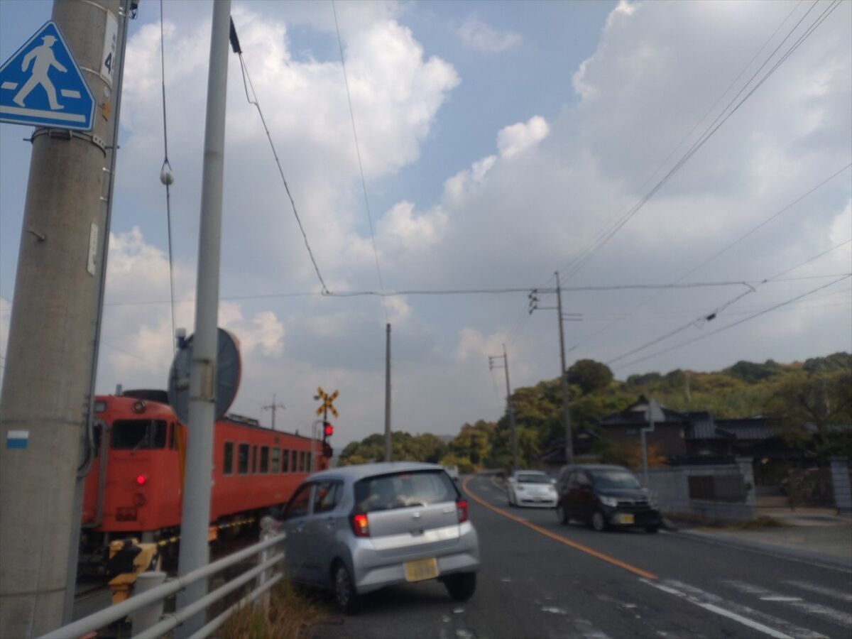 左の踏切を渡り海の方に行きます。