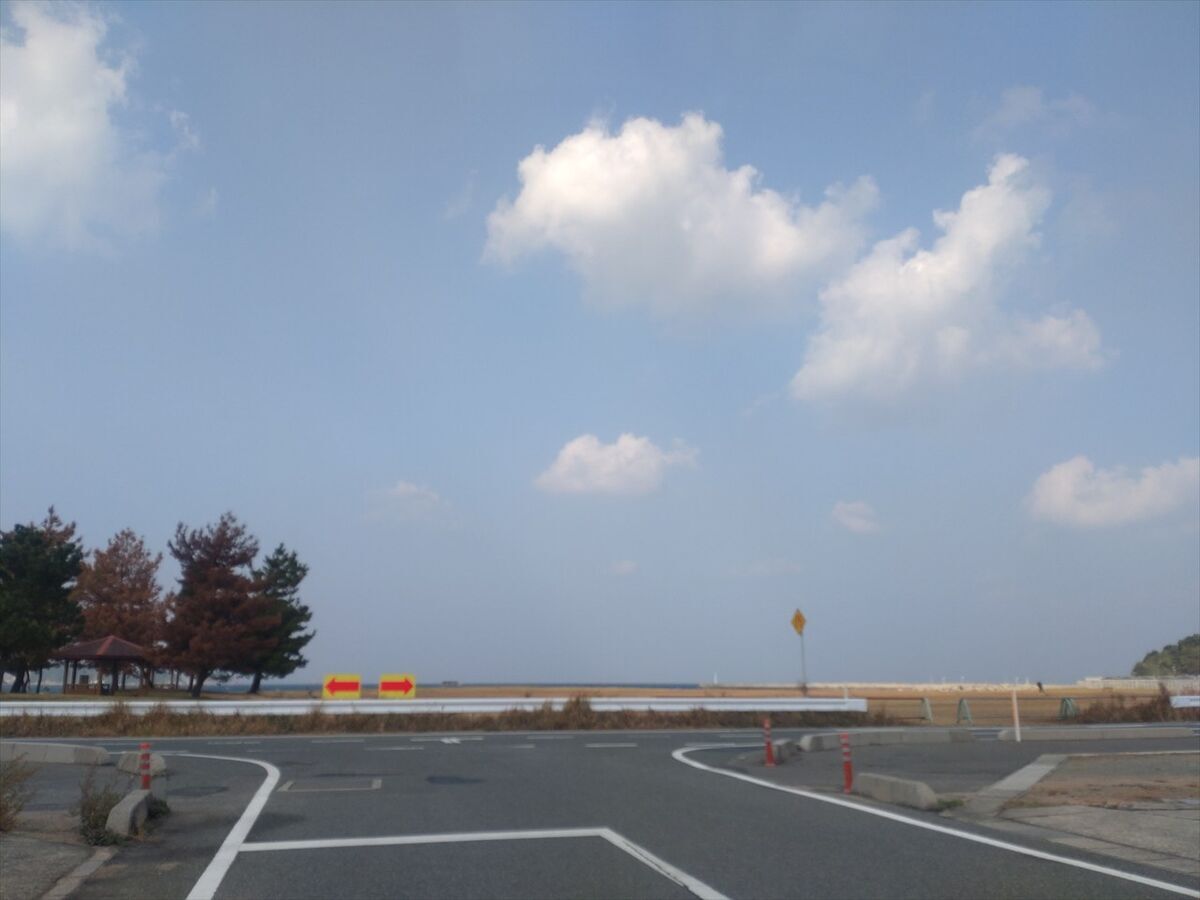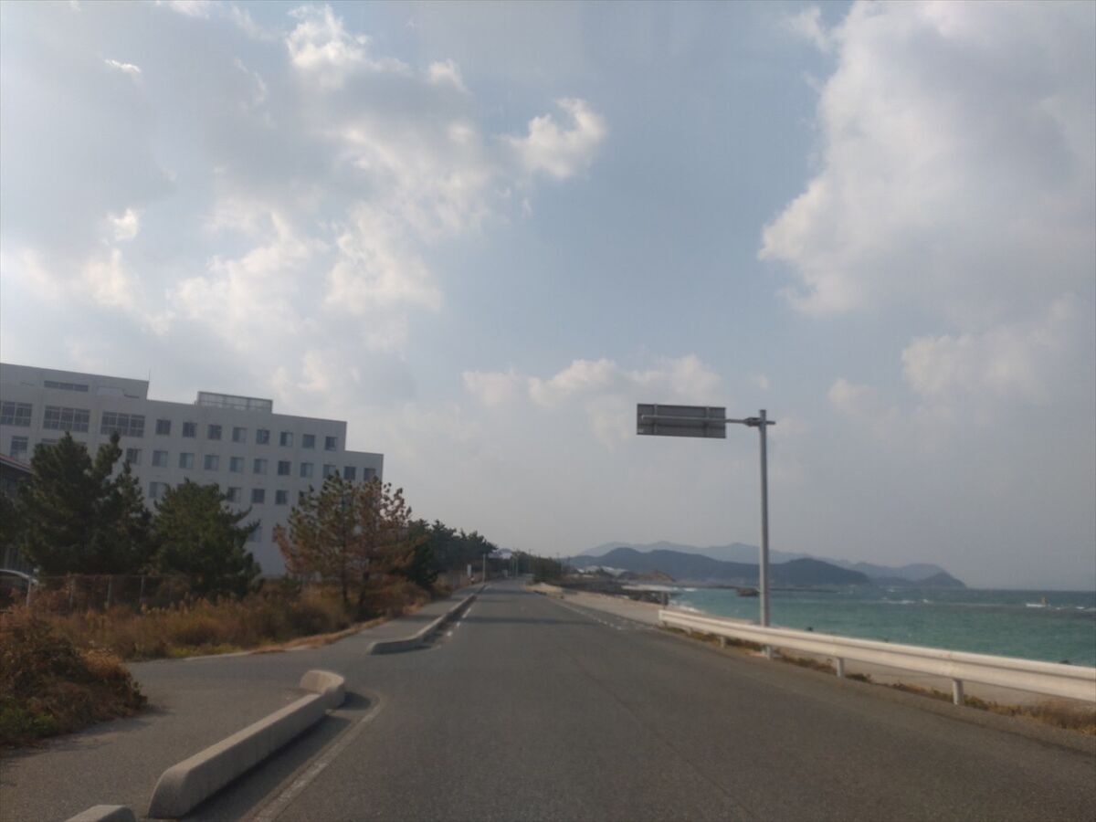 突き当りが海岸ですね。左折します。