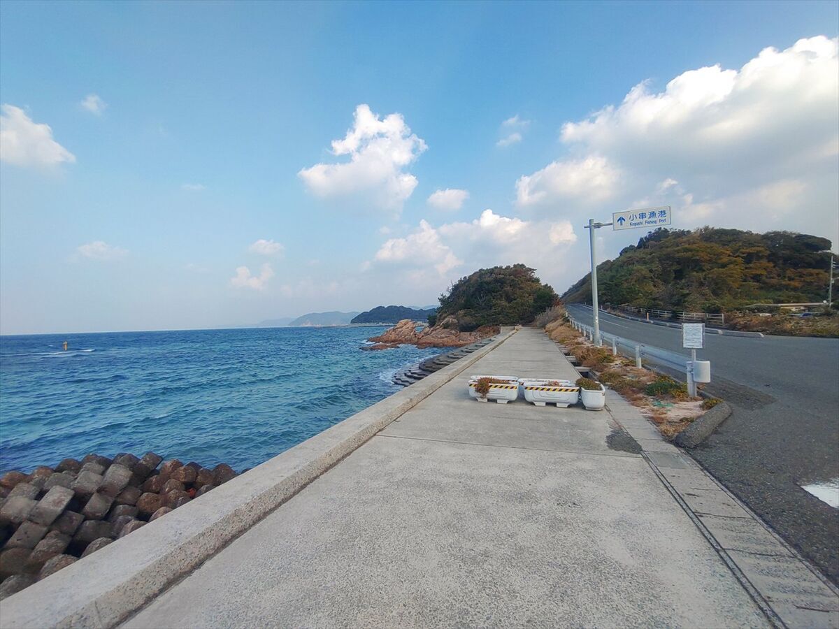 ここから狭い道に上がって小串方面に進みます。