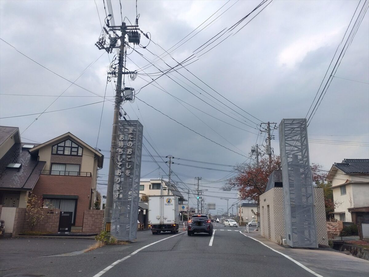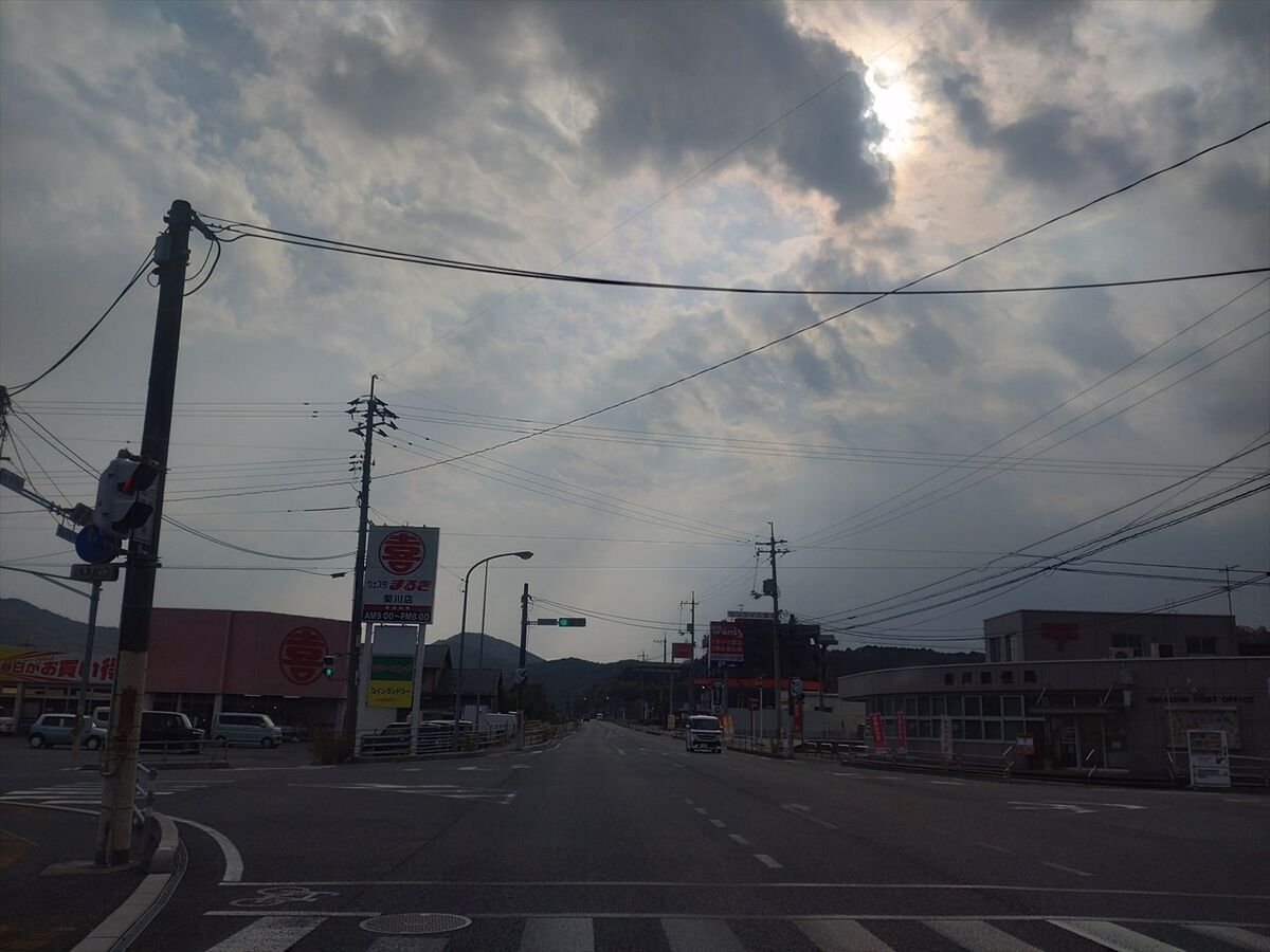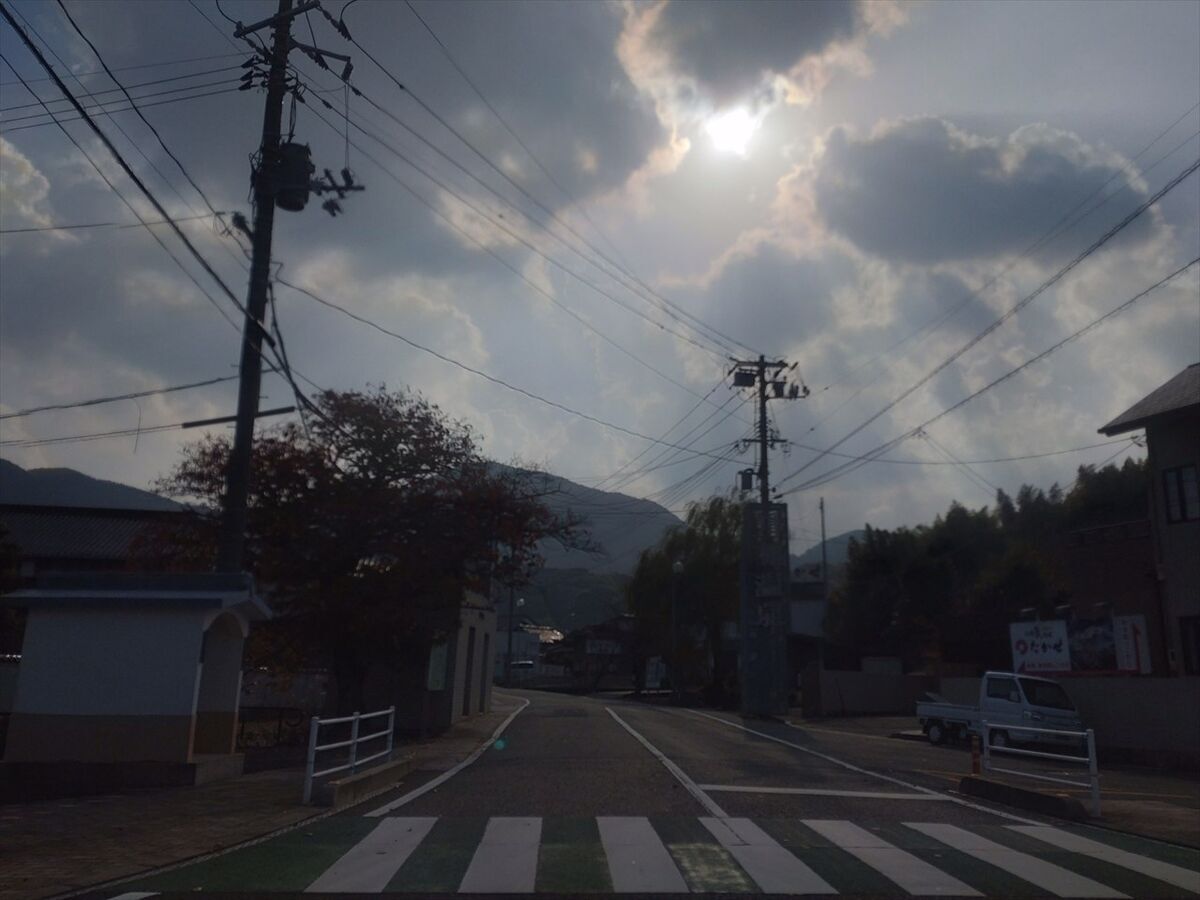 川棚温泉街へ入ります。この辺りは雨が止んでいますね。