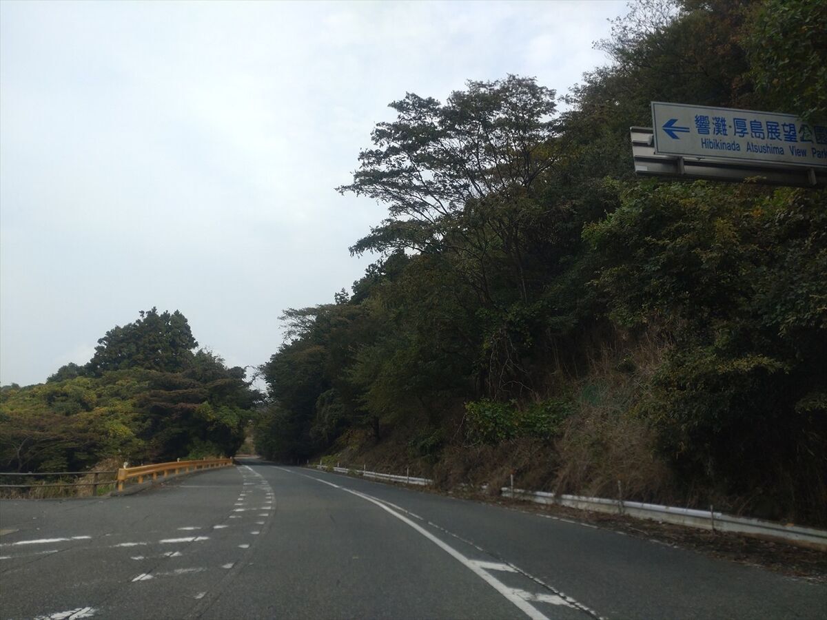 ここを左折ししばらく坂を上ると響灘・厚島展望公園です。