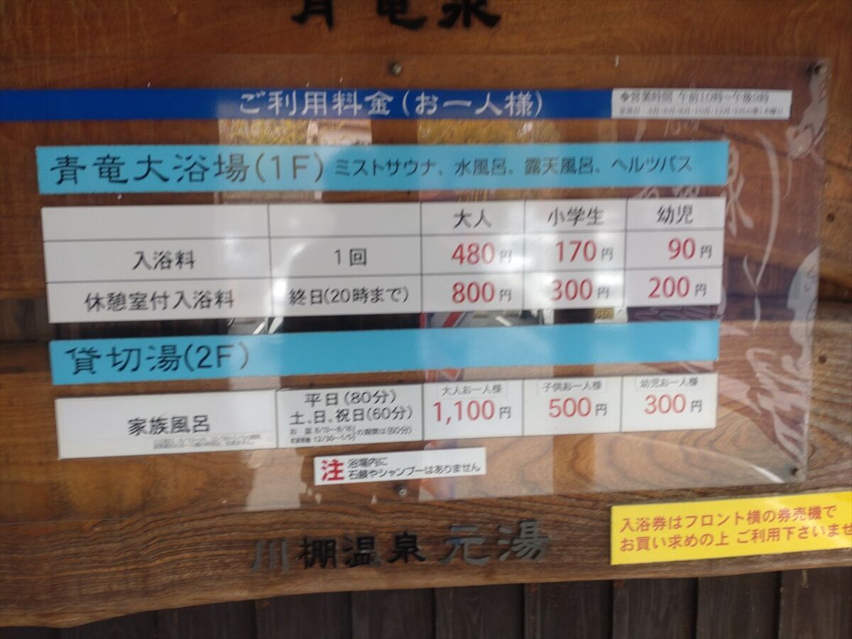 入浴料480円でシャンプーなどは持参が必要でドライヤーはコイン式になっています。