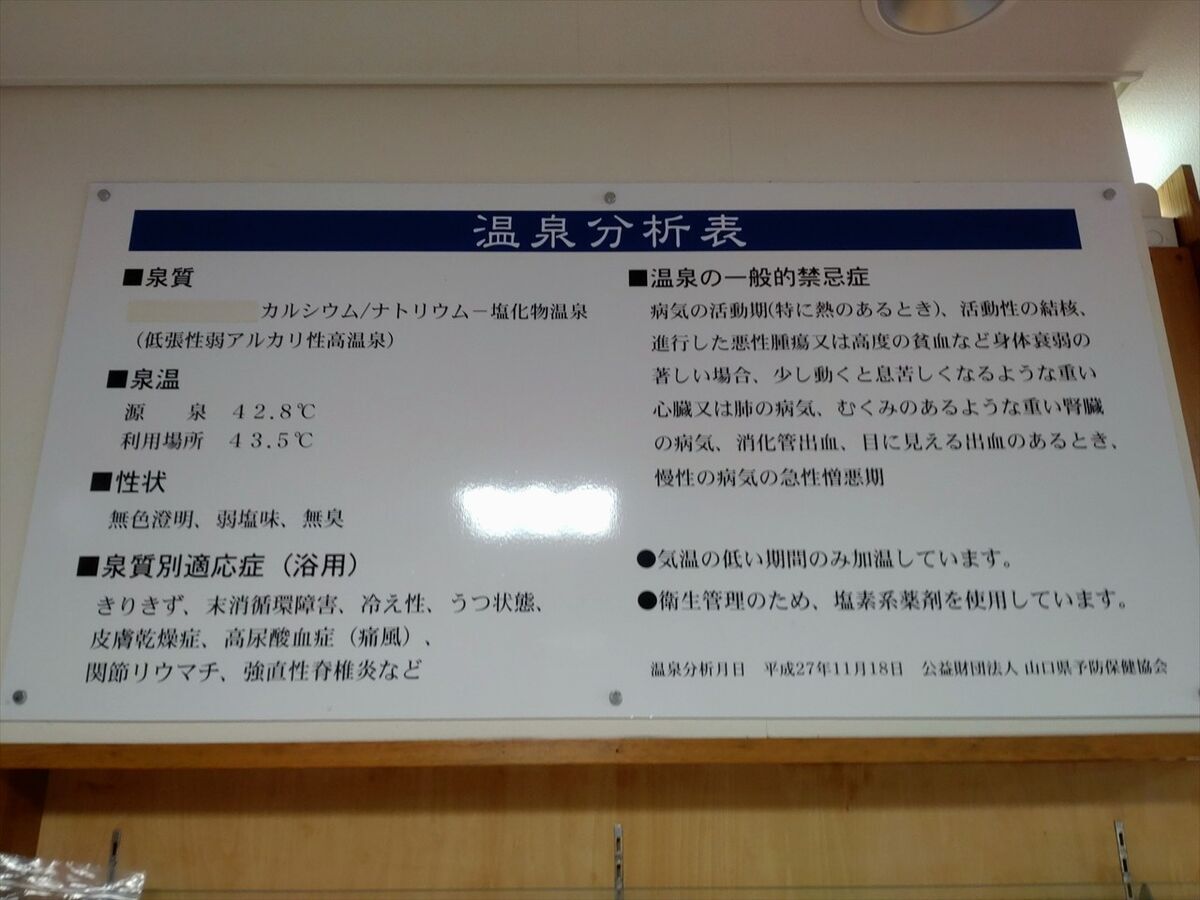 公式サイトにはカルシウム・ナトリウム-塩化物温泉(低張性弱アルカリ性高温泉)と書かれていました。