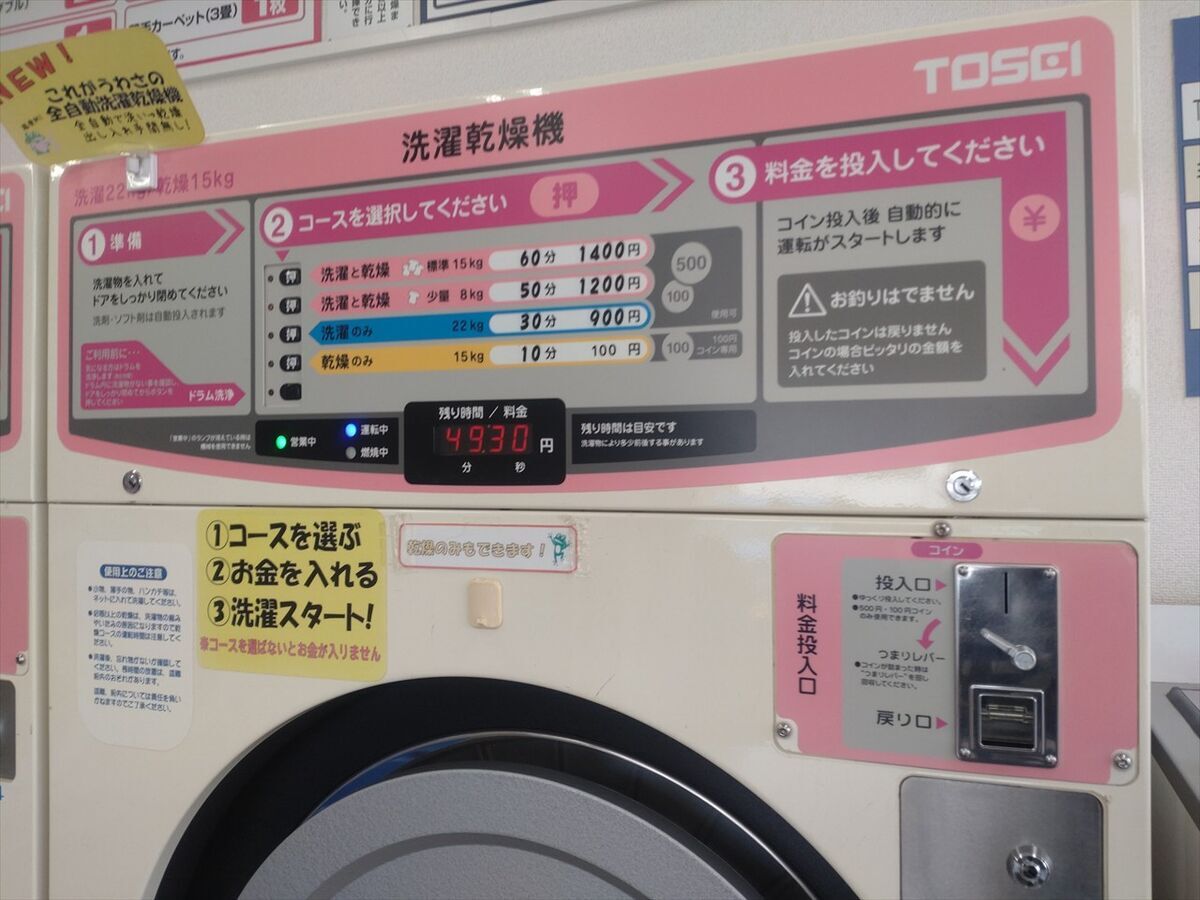 洗濯乾燥機が空いていました(^^) 少量50分コースにします。