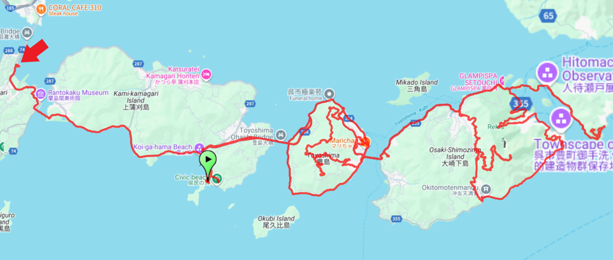 明日は安芸灘大橋を渡りとびしま海道から出て江田島方面に行ってみようかなと思っています。