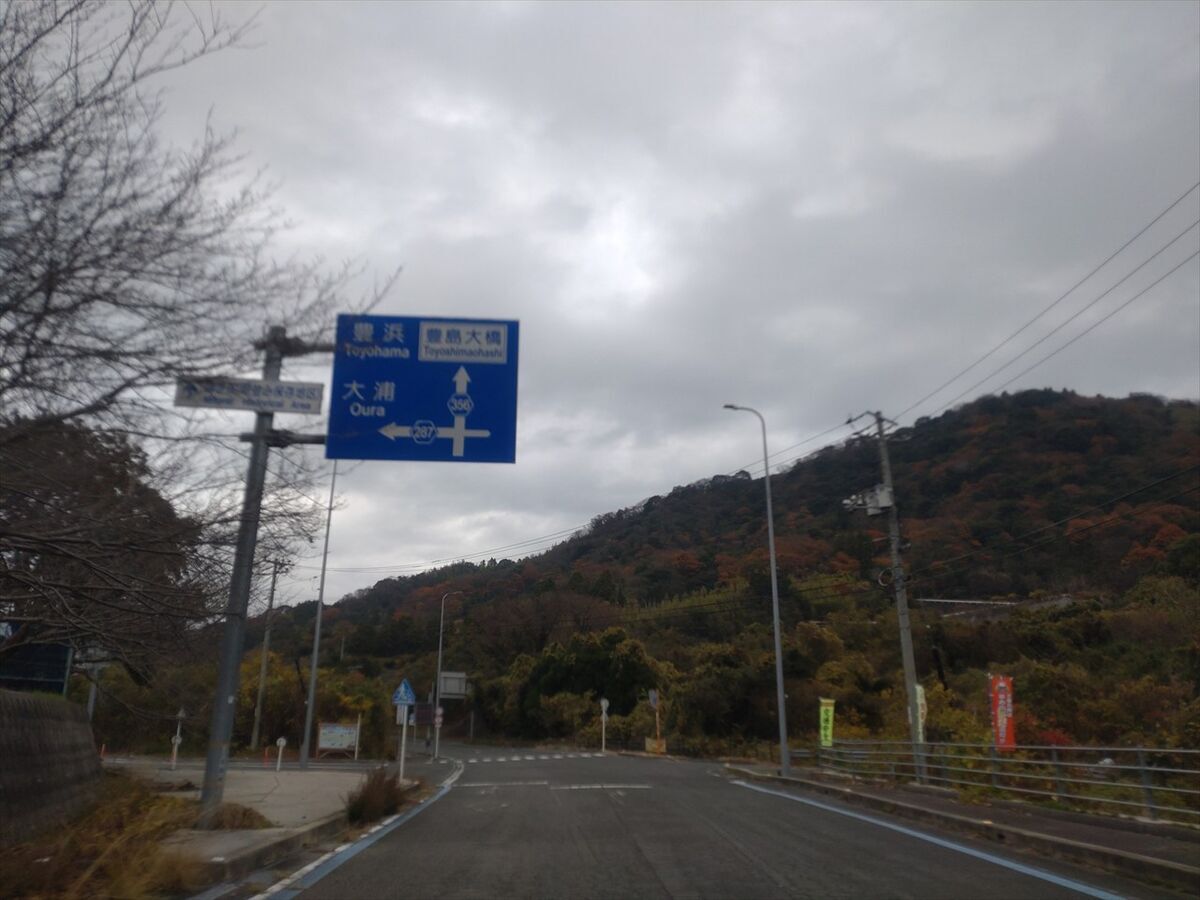 ここを右折すると豊島大橋ですがここを左折します。